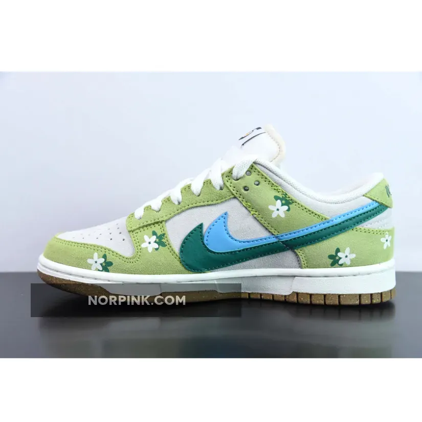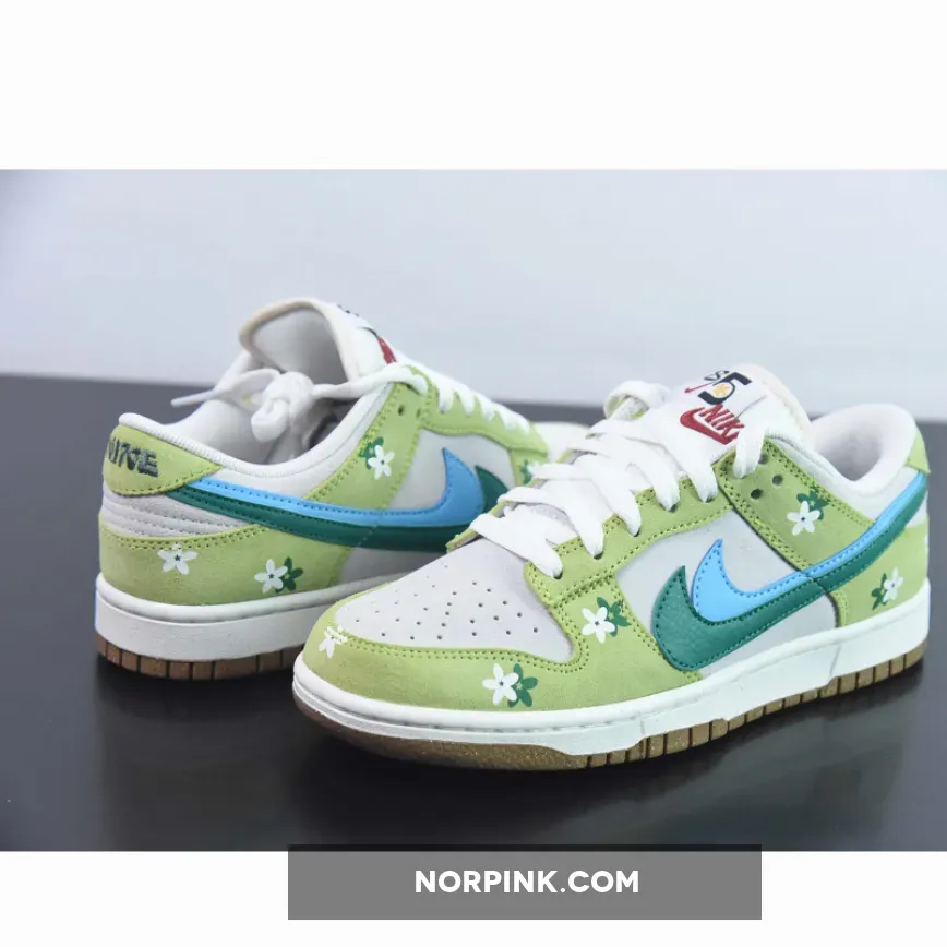 Custom Nike Dunk Low ’85 Double Swooshes’ Green Sail – step up your fashion game with NORPINK.COM.