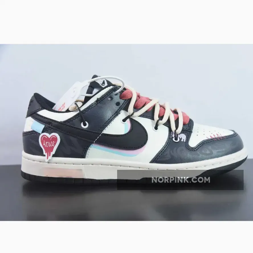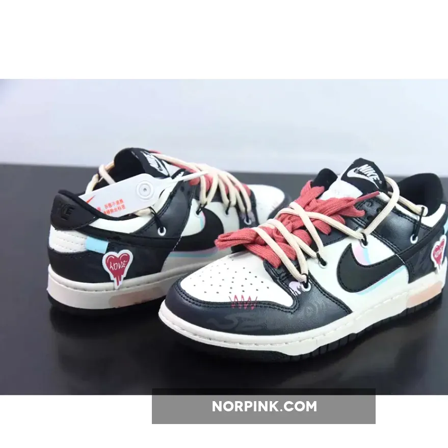 Custom Nike Dunk Low ‘Love’ Black White – elevate your look with NORPINK.COM.
