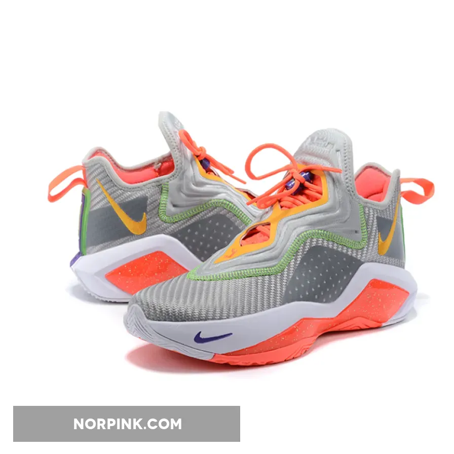 “I’m loving the LeBron Soldier 14 ‘Hare’! The grey ballistic mesh upper is sleek & durable. The pops of red, orange, purple, and green add a fresh twist to the classic design. Comfortable fit and great support on the court.” – RachelM