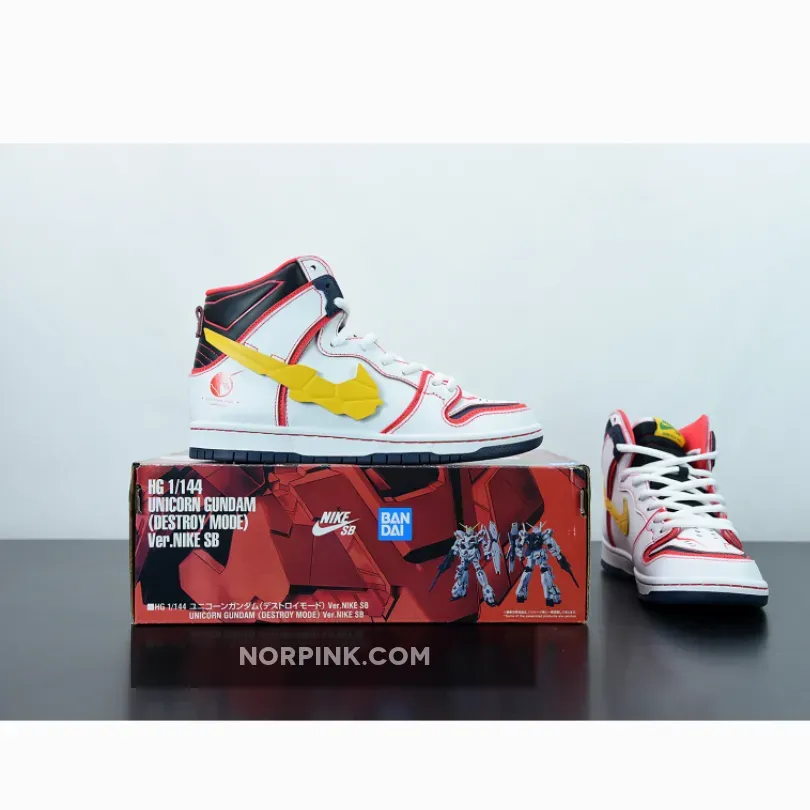 The collection will include two color options of the Nike SB Dunk High for Project Unicorn. Inspiration comes from the Mobile Suit Gundam Unicorn, a novel from the Gundam universe, which more than likely will celebrate the 15th Anniversary. The two colorways borrow colors from the RX-O and Banshee Norn Destroy Mode suits, with some jagged, robotic details.