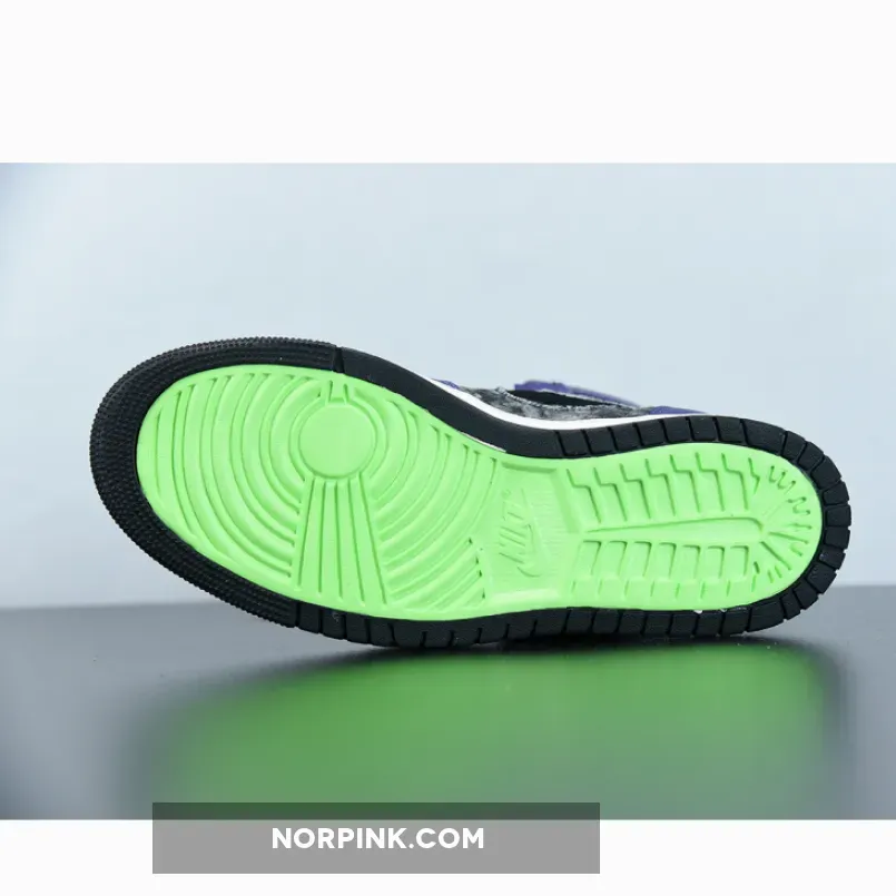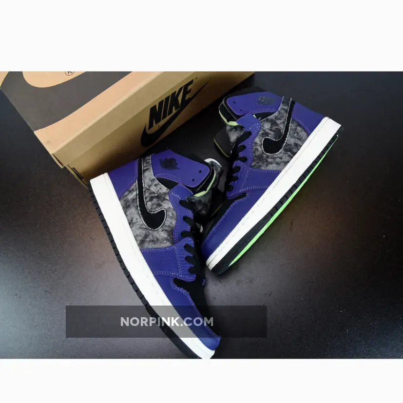 On this latest addition to Zion’s slowly increasing portfolio, we see the perfect amalgamation of retro stylings and modern southern charm. Using the AJ1 as its canvas, we’re presented with an upper comprised of black washed denim and a black suede toe as the foundation which plays host to purple faux crocodile leather overlays in typical AJ1 positioning. Underfoot where the rubber meets the road, we see an all-white midsole framed by a two-tone black and “Lime Blast” green outer sole to ensure a comfortable ride. Completing the design is a black suede swoosh, lime blast green exposed foam tongue/heel support, the “ZOOM AIR” tongue branding, and on the reverse side reads “BAYOU BOYS”. The pair also comes boxed with replacement laces in black, green, and purple to suit any color combination you’re vibing.