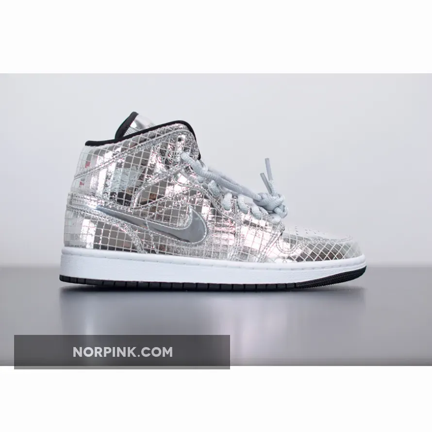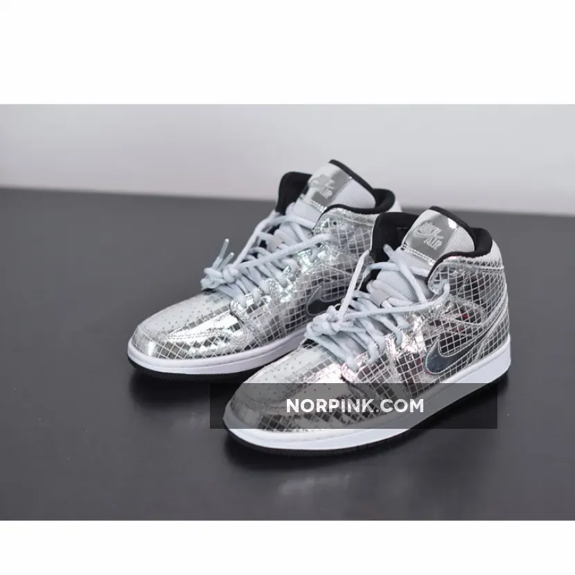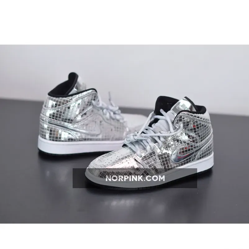 black white silver jordan 1 #disco nike #disco ball nike #air jordan 1 mid se metallic silver #jordan 1 disco #disco ball sneakers #disco jordan 1 #jordan 1 disco ball #nike disco #air jordan disco ball #mirror ball shoes #disco ball shoes #disco jordans #disco ball jordan