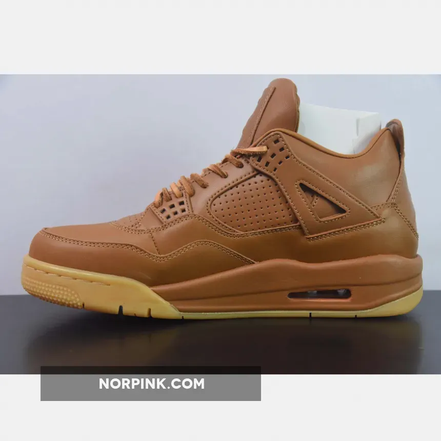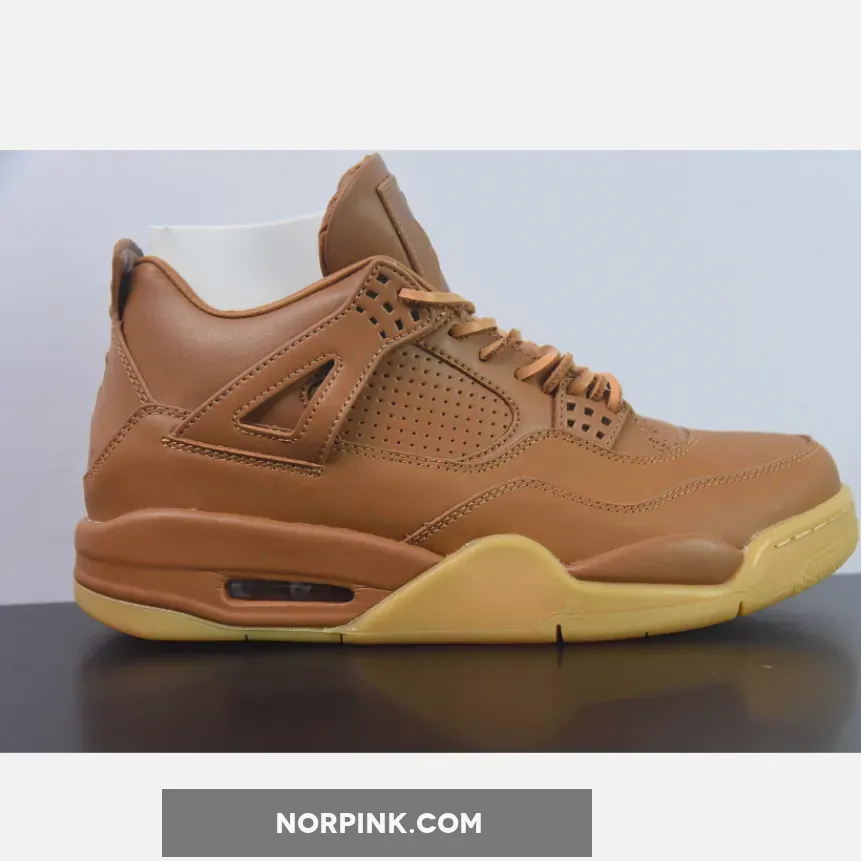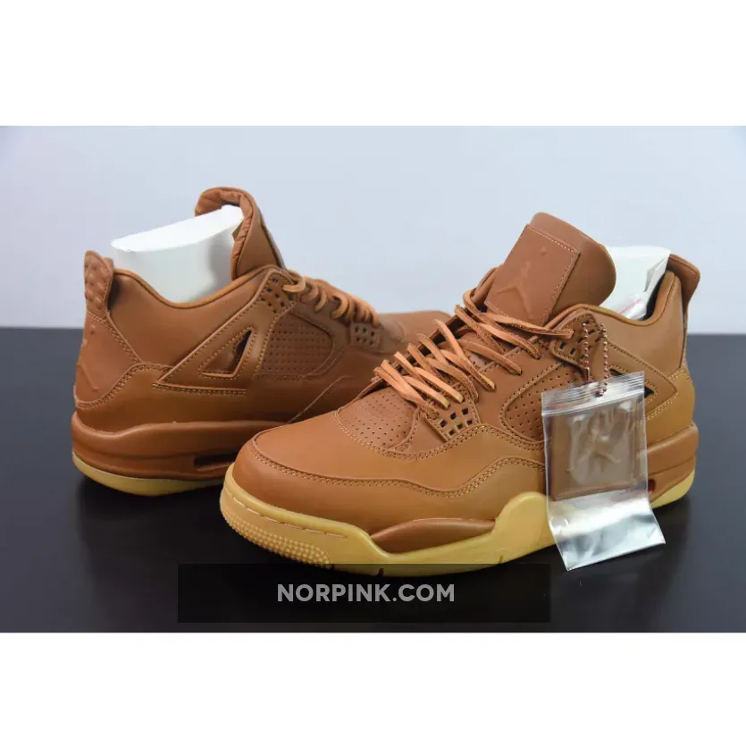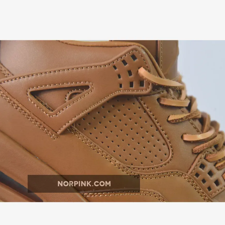 This Air Jordan 4 also known as the Air Jordan 4 “Wheat” colorway references the iconic Timberland work boot. Built with a premium leather upper and laces that includes His Airness’ timeless Jumpman logo on the tongue, heel and outsole. The gum sole below is the perfect accompaniment to the high-class upper, while a quilted insole provides an extra level of luxury beneath the feet.