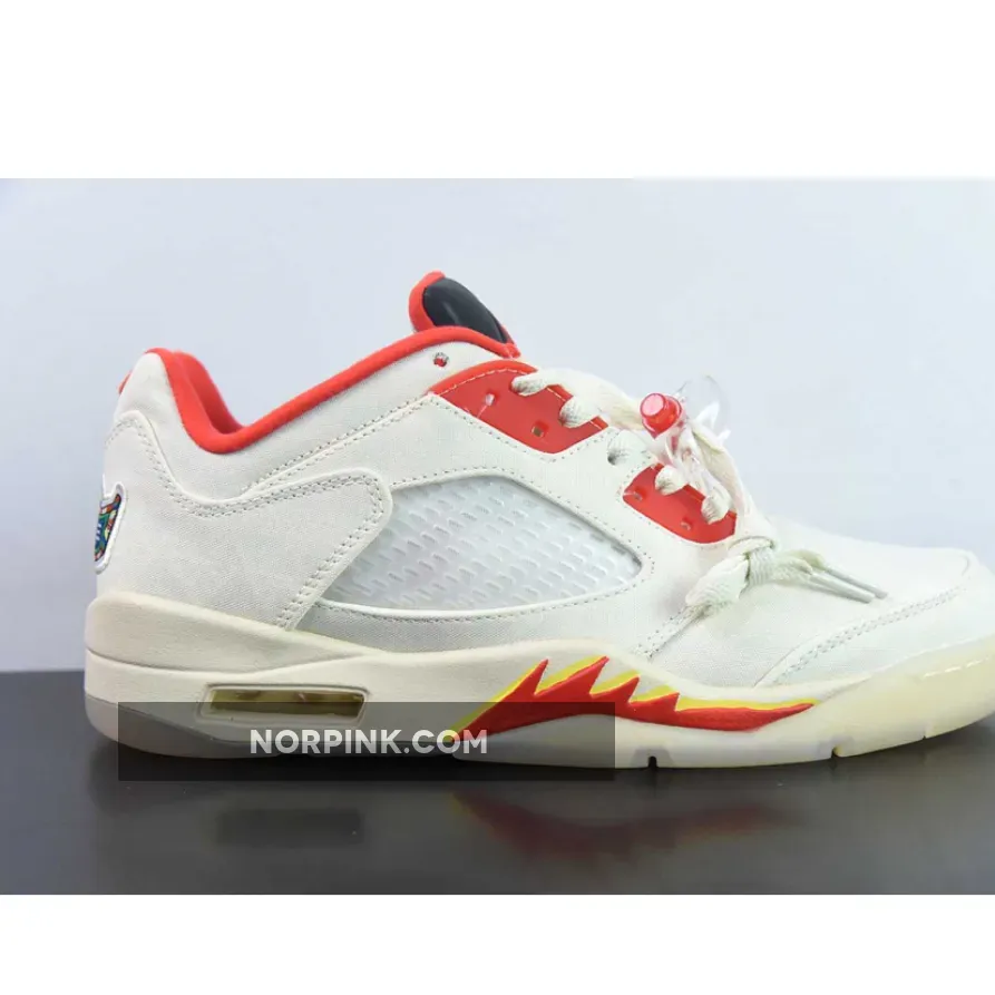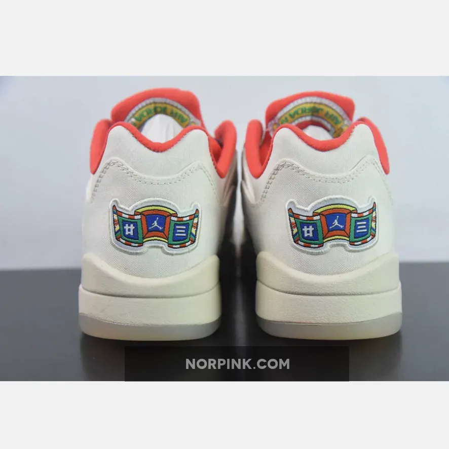 This low-top Air Jordan 5 features a Sail tear-away canvas upper that reveals a colorful pattern print underneath and considered design details that commemorate Chinese New Year punctuate its design.