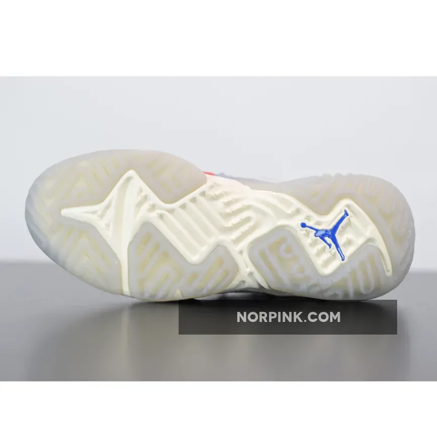 Theres’s not much to expose about the colour palette. A subtle and simple appearance of the Jordan Delta trainers for running, jogging, and sprinting was a must all-along. As a result, sneaker lovers are in luck. This boot is rich with comfy features and, of course, highly engineered materials. Synthetic mesh walls, foam padding, and all the safety measures make this silo unmissable. Light beige shade on the suede overlays, and the Nike Swoosh lets the electric blue collar pop up. The sidewall net is see-through, and the red hints jump out boldly. The lock-safety of the heel and the soft tongue tab make sure your feet are snug always. Finally, the white React midsole with Herringbone pattern completes the futuristic design.