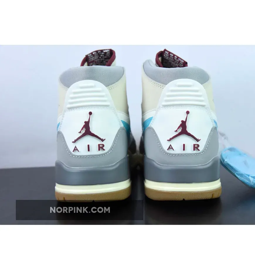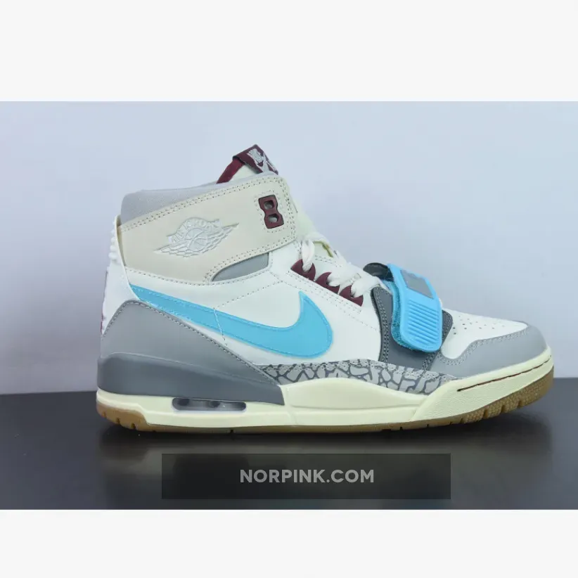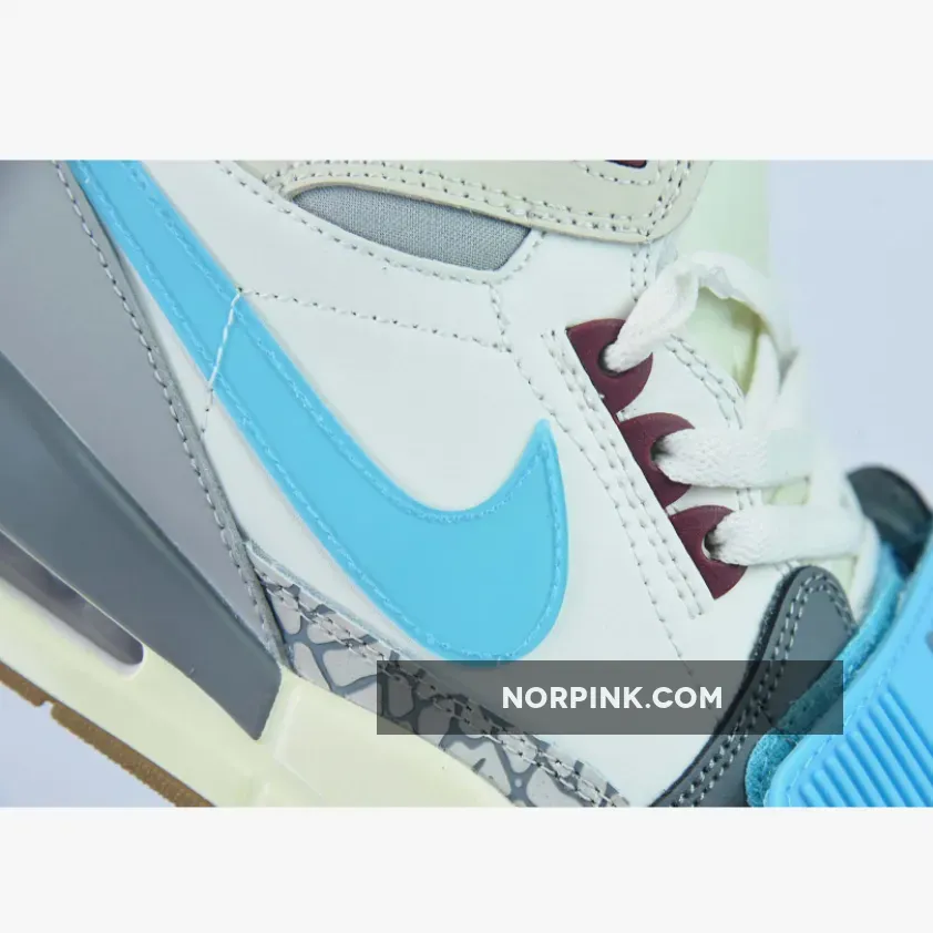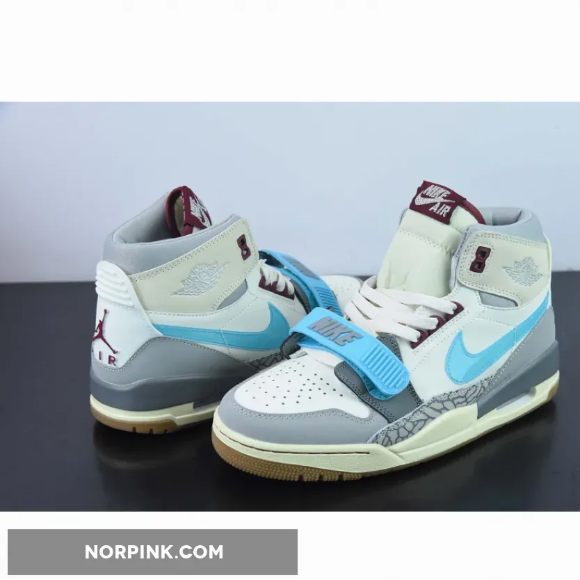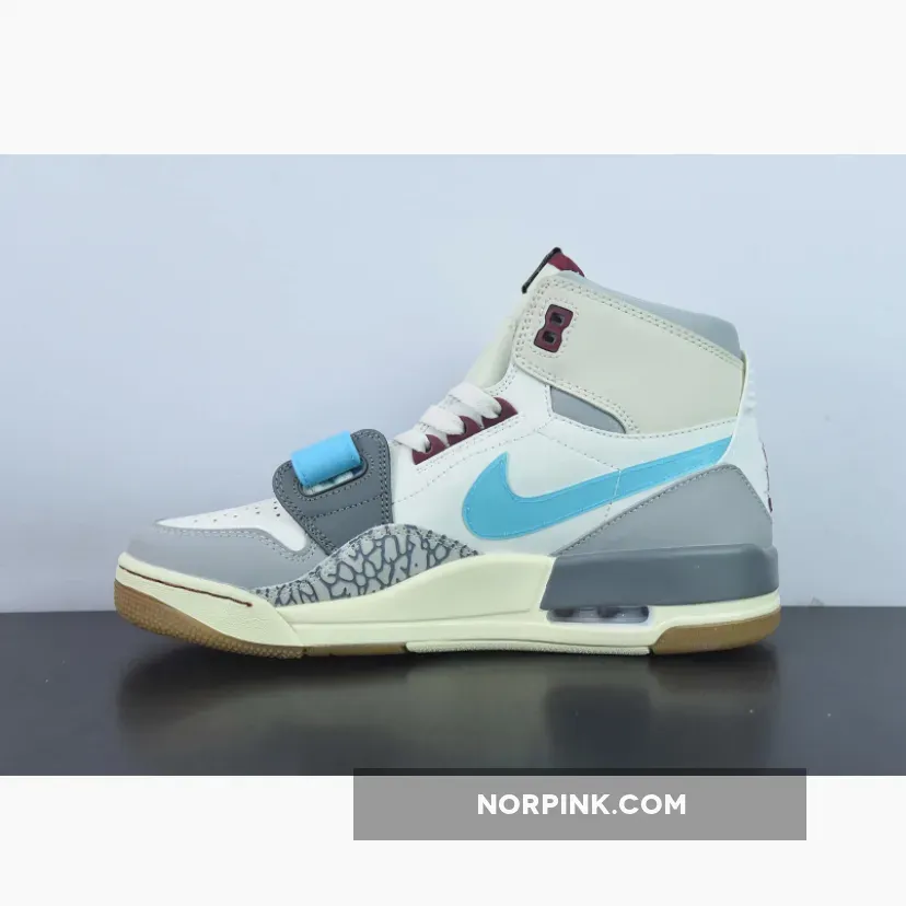 Keep your style cool and fresh with the Jordan Legacy 312 Blue Grey White. A splash of bright colour is added through the cyan-hued forefoot strap and Nike Swoosh. Meanwhile, the plush collar is supported by a neutral Air Jordan-branded grey overlay.