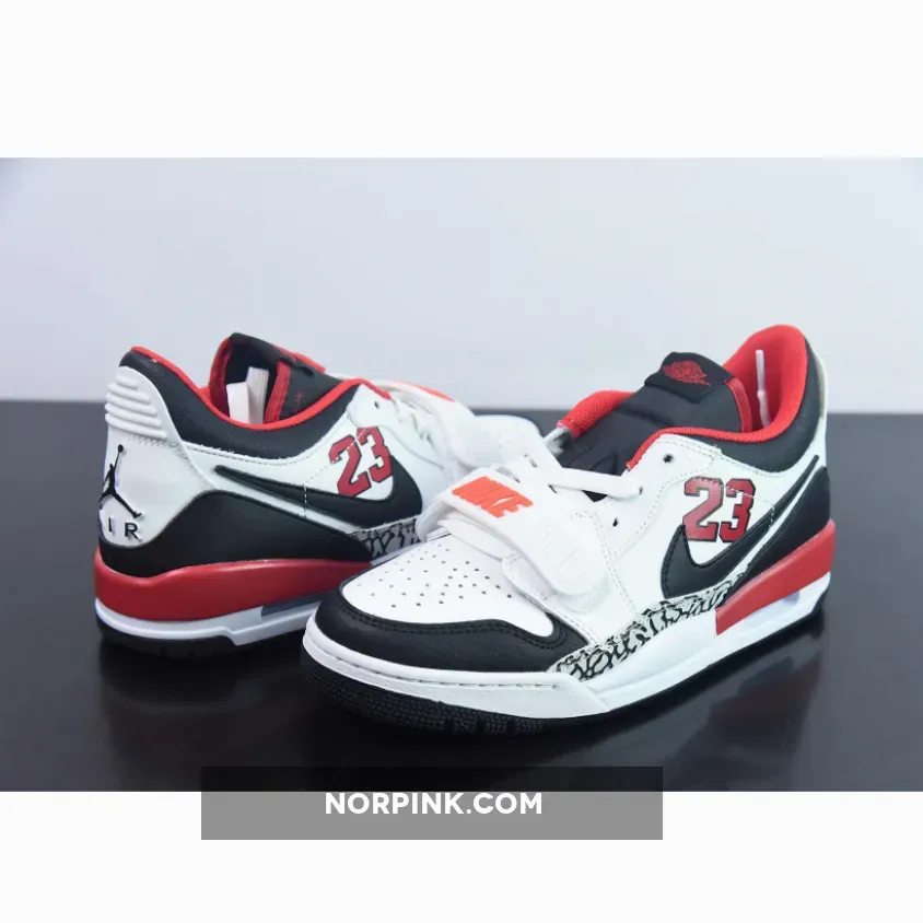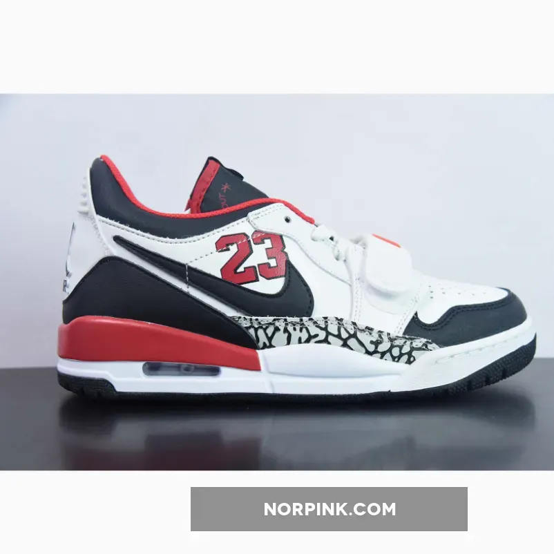 This offering of the Jordan Legacy 312 Low takes on a classic Chicago Bulls color makeup as the shoe gets covered in white, black, and red. Its white top is decorated with a black leather toe box, Swoosh, and a heel guard. At the same time, this pair including “23” logos on the lateral side panels, elephant print on the mudguards, and various Nike and Jordan branding throughout the sneaker. Lastly, a white midsole with red accents and a black rubber outsole completes the shoe’s aesthetic.