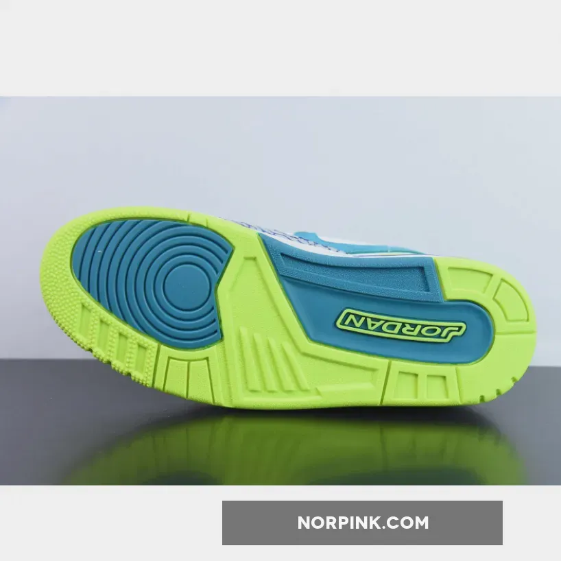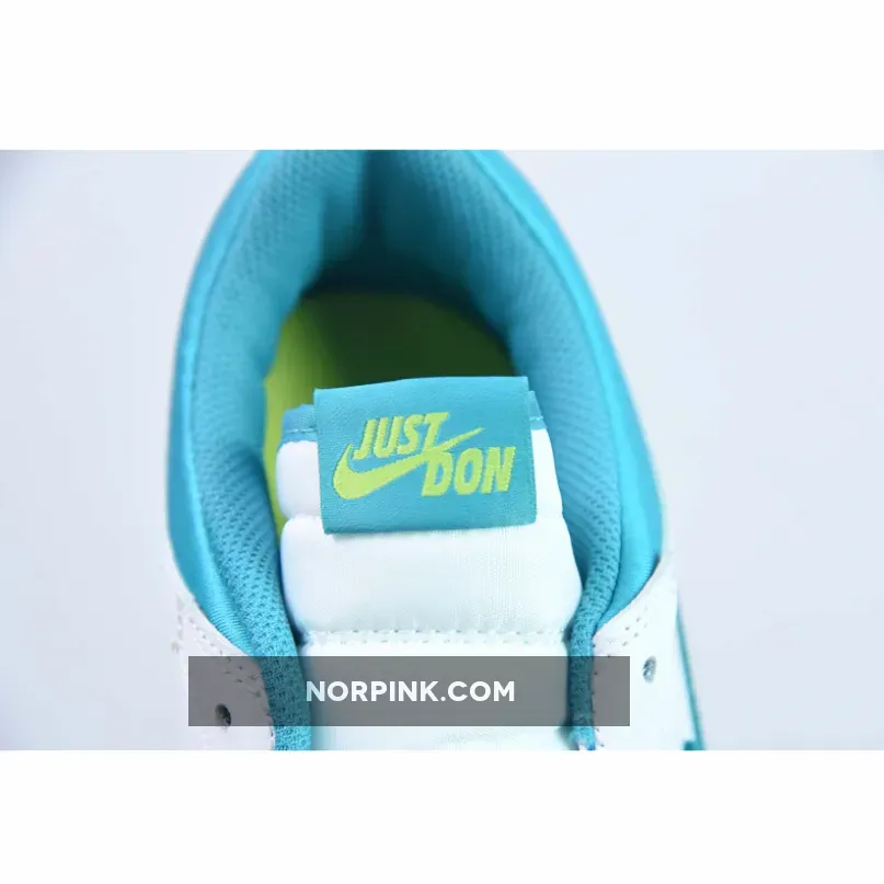 This release features Summer vibes by utilizing bright shades throughout. Blindingly bright aqua tones find place across the lining, tongue tab, as well as the textural suede swoosh while volt green ornaments the heel wrap and outsoles entirely. Branding notes are true to form, with “Just Don” standing next to boldfaced font hits and the iconic Jumpman, though the insoles feature a small circular patch akin to vintage bottle caps or possibly sportswear-centric iconography.