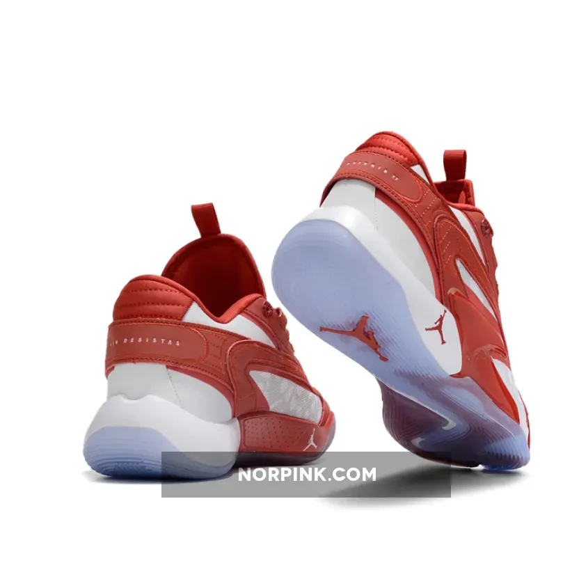 Dressed in a cohesive white and red colorway, this pair is the perfect pair for the court. White mesh constructs the base of the uppers and red leather overlays are prominent. Also, the midsole features a red Jumpman logo, and the red tongue proudly displays a white Luka Doncic logo. In essence, the sneaker is crafted with performance as its core focus. Underfoot, the modern sole unit keeps things straightforward, with a semi-translucent, icy outsole rounding out the outfit.