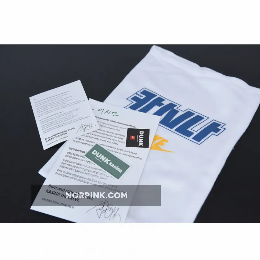 The Dunk Kasina references travel through Korea. The Industrial Blue colorway draws inspiration from ’80s Korean transport. It mirrors the look and feel of Seoul’s vintage buses, down to a unique hangtag that reimagines the steering wheel. The dark suede overlays remind of vintage buses in conjunction with the mustard yellow swooshes that sprawl along the profile in the same fabrication. White tumbled leathers then balance underneath, matched by the laces, tongue, lining, and midsole. Further special branding takes form on the tongue patch as its bold lettering phonetically spells out the Kasina namesake.