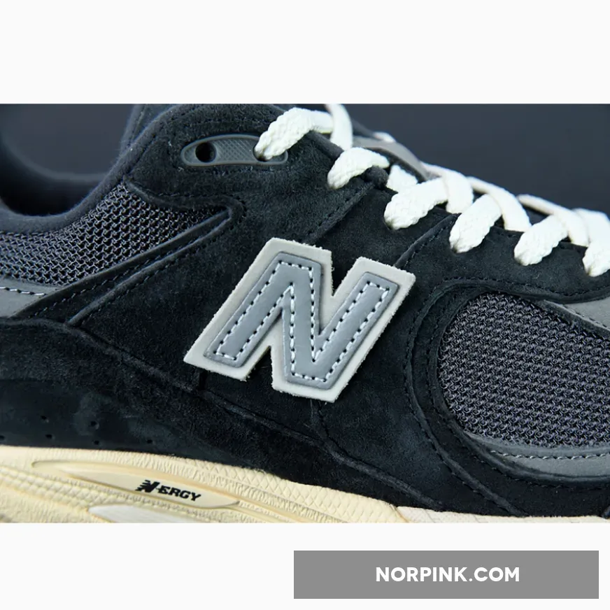 The New Balance 2002R has a brand new member. Meet the stealth-mode New Balance 2002R Phantom. This NB 2002R is mostly Phantom black with touches of Magnet grey. The base is a tight mesh in Magnet grey. Most of the overlays in premium suede are Phantom black except for a few leather accents in Magnet grey. The “N” logos on both sides of the shoe are light grey with another light grey outline around them. White laces provide contrast to the dark-coloured upper. The yellowed-out and vintage-looking midsoles feature ABZORB and N-ergy cushioning technology.