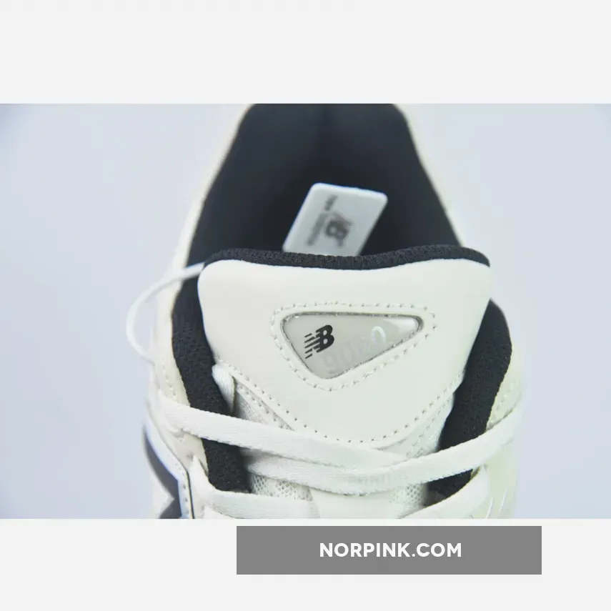 This colourway features a sail white leather upper and a mesh base with honeycomb patterns underneath. Black accents adorn the N logo on the lateral panel and the interior lining. The heel counter and rubber portions on the midsole come in grey.