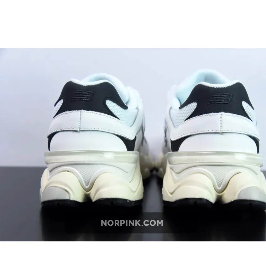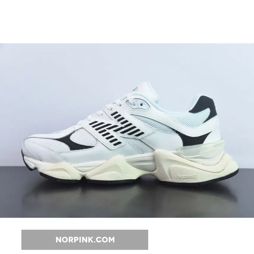 The New Balance 9060 White Black sneakers are a failsafe monochrome option. They feature in a White and Black color blocking. This offering of the New Balance 9060 comes constructed with a perforated leather base with smooth leather and suede overlays.. The plush N appliqué, placed off-kilter in signature fashion, picks up on the black shade again and the outsole follows suit, too. Subtle branding lands on the heels via black-on-black logo embroidery, while the style name tracing the tongue and N-lettered throat make things more explicit. The eye stays are spliced in the middle to add to the layered design. Finally, a soft beige hue enters via the faceted midsole which provides ample cushioning at the right places.
