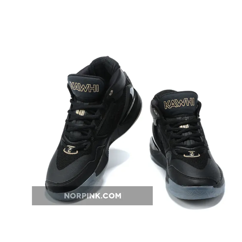 this new colorway of Kawhi Leonard’s signature sneaker dons an all-Black upper that’s then sharply contrasted by the Gold accents noted on areas such as the tongue branding, heel branding, the #2 accent above the toeboxes and the list of Kawhi’s accomplishments on the lower portion of the tongue.