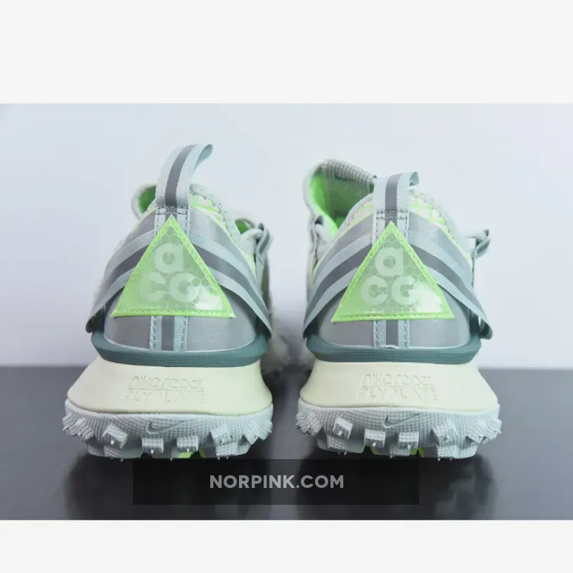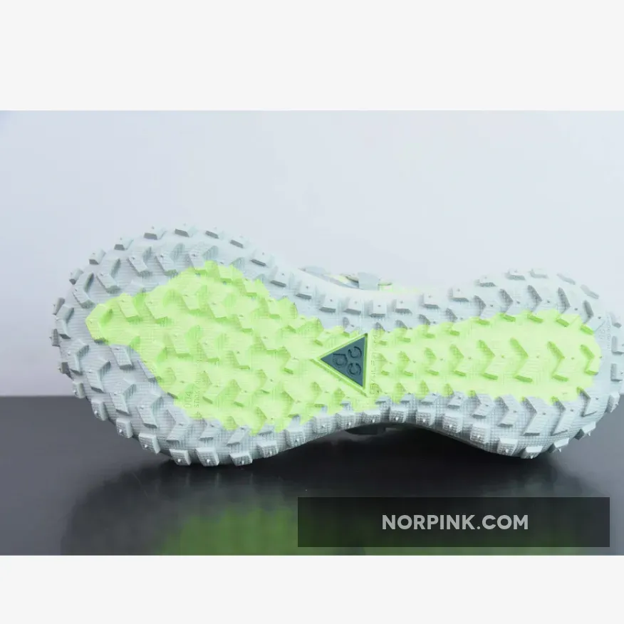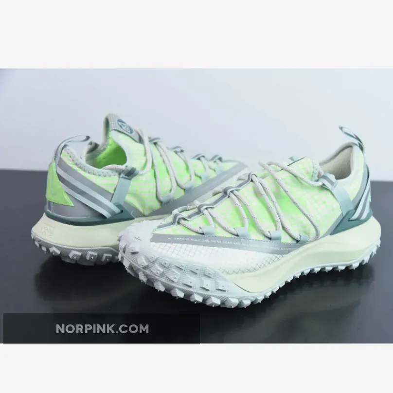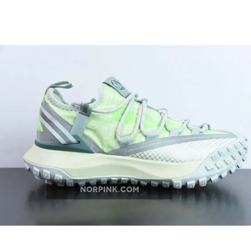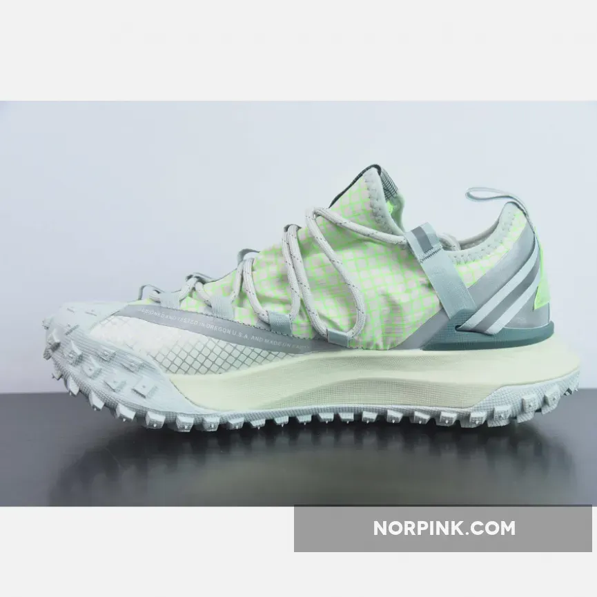 Ripstop nylon makes up the bulk of the shoe’s upper, but canvas lace loops and rubber tooling join the mix. Nike ACG differentiates its latest offering from previous iterations via the neon greens that take over the pair’s top-half, a refreshing choice given how stealthy its predecessors have been; a grid pattern also adds character to the Mountain Fly. Light grey detailing throughout the forefoot, mid-foot and heel introduce reflective properties to the silhouette, fitting of its outdoors-ready purpose. Nike React foam is protected by a robust outsole system, creating a comfortable, but durable and grippy ride for all conditions.