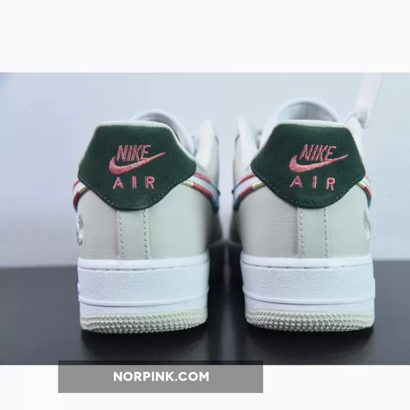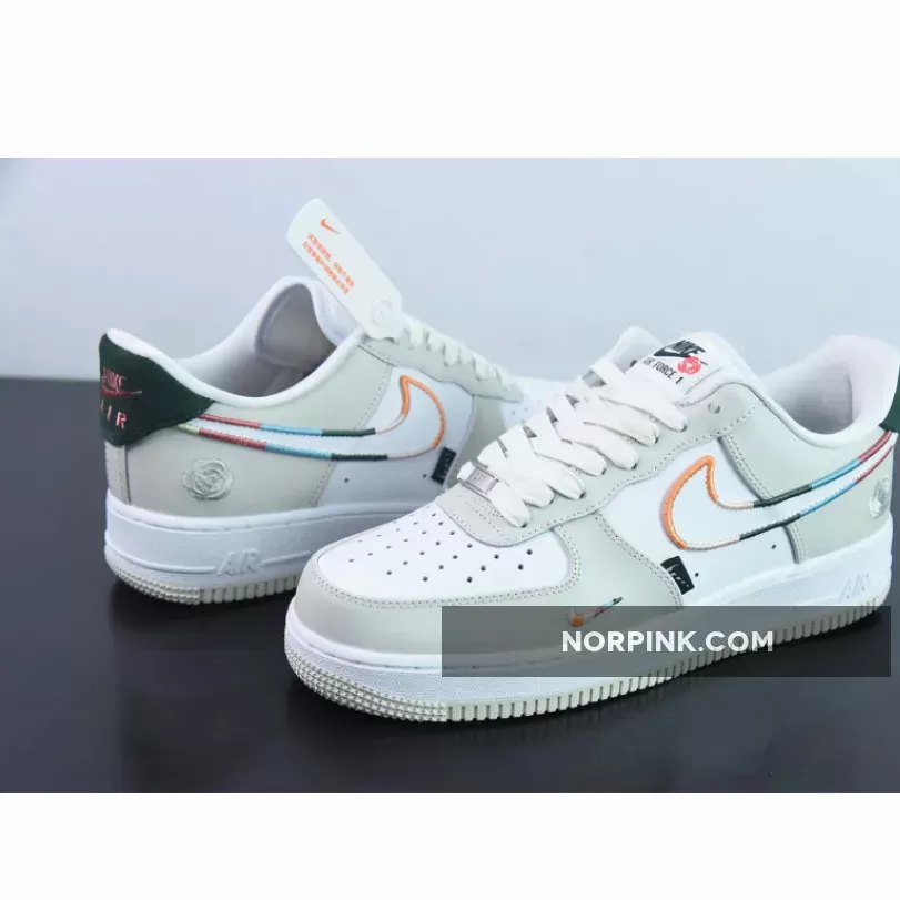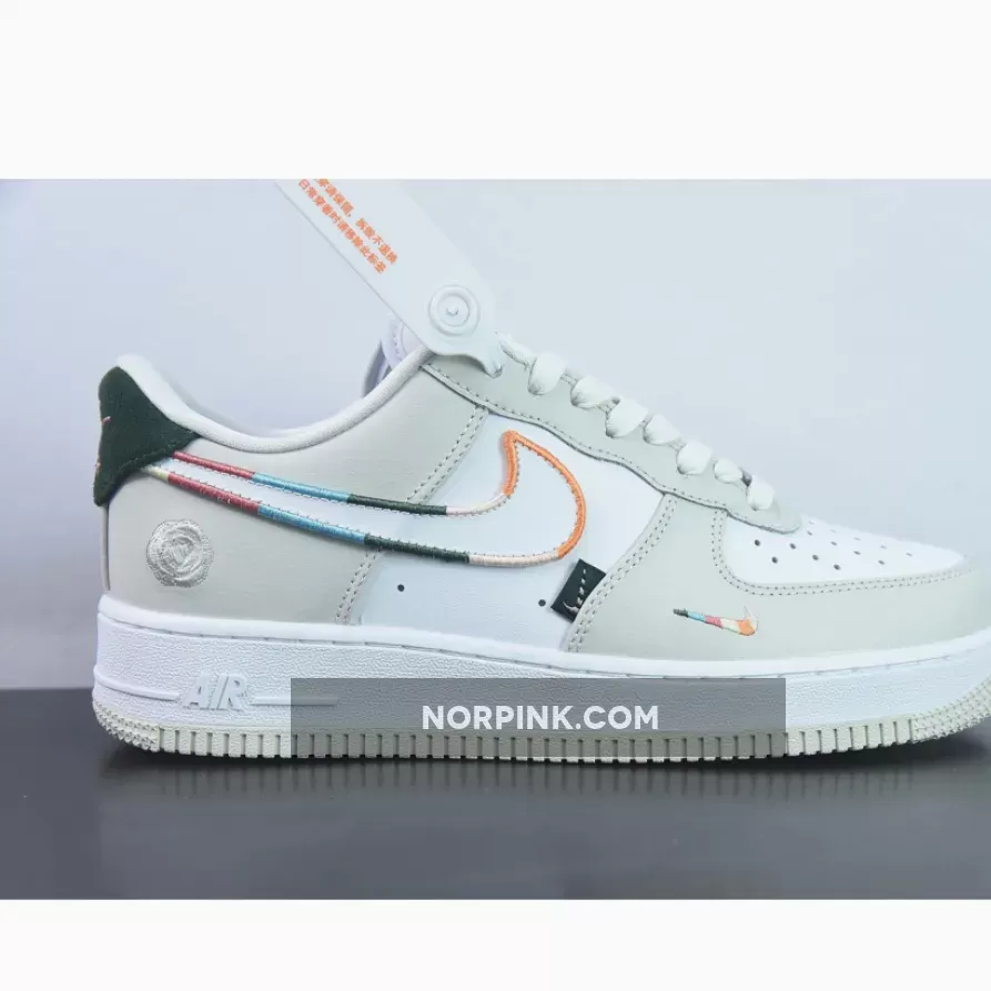 this Nike Air Force 1 Low comes constructed with leather throughout and mesh tongues. White runs across the base with Light Bone on the overlays. Highlighting the shoes, we have a mini 3D embroidered Swoosh on the sides that feature multiple colors, while the same treatment outlines the larger Swoosh on the panels. Next, a tonal embroidered flower adorns the lateral ankle, and a small rose lands on the tongues. Green suede covers the overlay, lateral labels, and ‘All Petals United’ on the insoles. Finishing the look is a two-tone rubber sole.