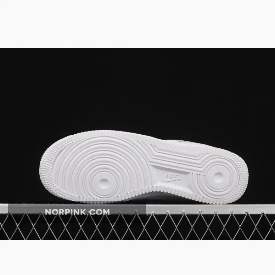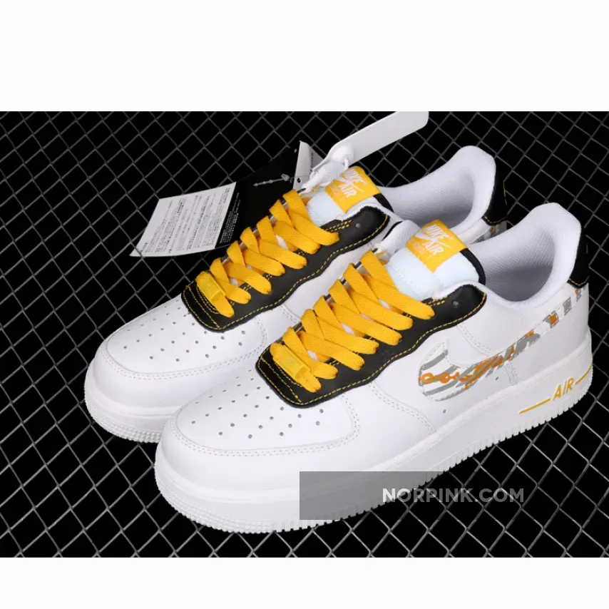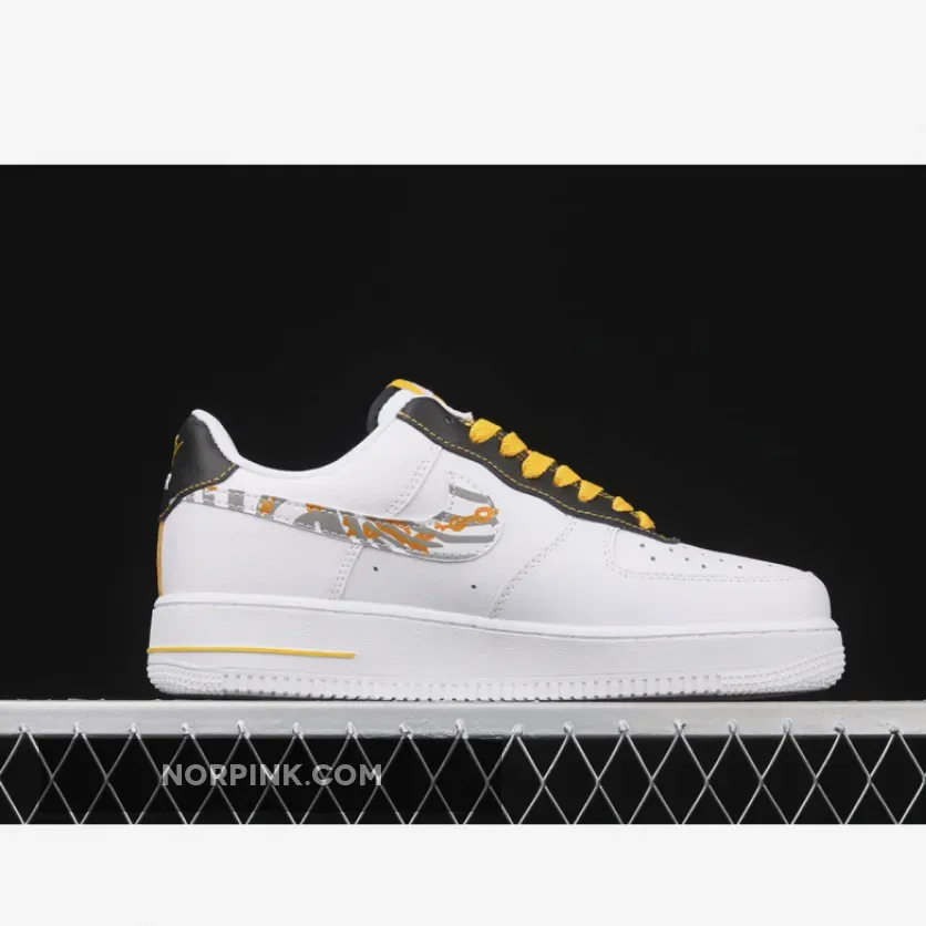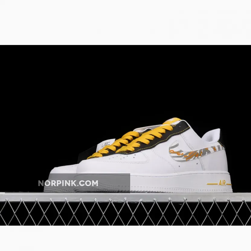 Starting from its most simplistic feature, the pair’s upper arrives in tumbled white leather, while liners, tongues, and sole units remain unchanged from your stock-standard release — save the latter’s mustard yellow decal. Fine, textured nubuck overlays in black are tacked on at the eyelet and heel overlays with contrast yellow stitching, the former housing butterscotch-colored laces, and dubraes. Tongue tags and rear branding also jump on the muted yellow hue, which now only leaves one final design element for discussion: the 3M reflective Zebra Stripe and chain link-printed Swoosh sets. How that — dare I say it — links in together is anyone’s guess, but it looks kinda cool. The same print appears again on the insole to complete the design.