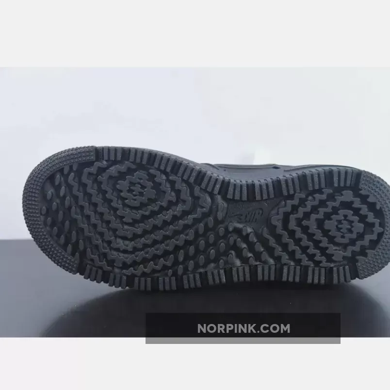 An all-black durable upper with tonal branding, rubberized ankle strap stacked midsole, and rubber traction outsole.Smooth panels of the aforementioned material then mold the typical AF1 shape with slightly thicker Swoosh cut-outs as well as a strap replete with newfound branding and subtle patterned webbing.