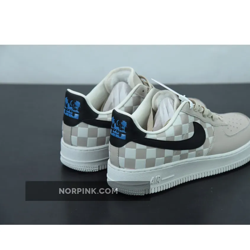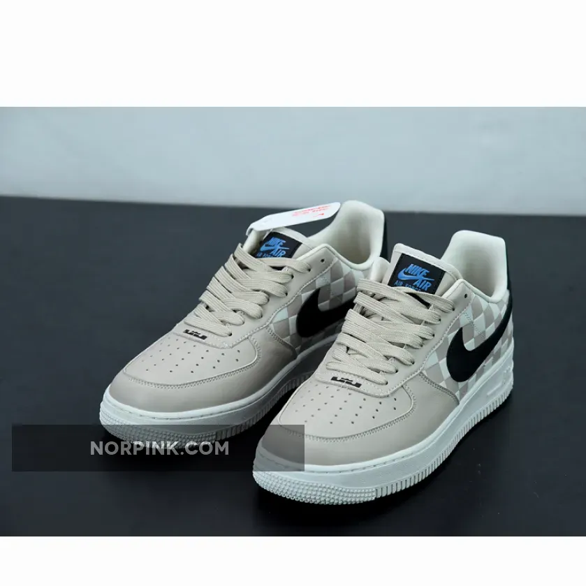 Before the release of the Nike LeBron 19, the LeBron x Nike Air Force 1 Strive For Greatness reminds us of the titular athlete’s philosophy (and hashtag). It’s a bold statement though the pair comes in a minimalist and neutral colourway. A light tan in smooth and perforated leather covers the forefoot, the eye stay and the tongue, coordinating with the other half of the shoe in chequered light tan and cream.