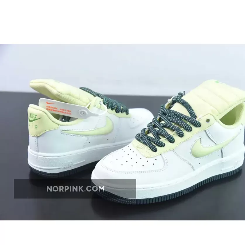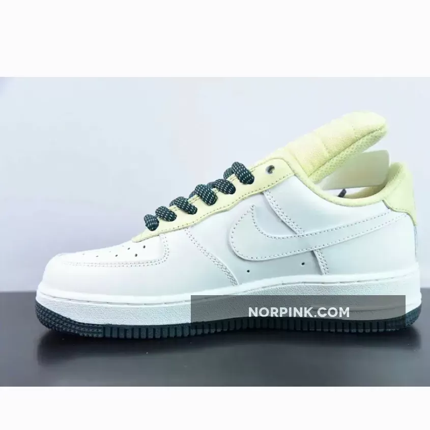 The palette on the “Big Tongue” Air Force 1 Low is as refreshing as a summer afternoon. Anchored by a clean white base, it lets its colors do the talking—quite literally. The rubber outsole and thick laces are awash in a refreshing green, setting the stage for the other standout hues. Then comes the lemon—a color that punctuates the elongated tongue, eyestay, heel overlays, and notably, the protruding jewel Swoosh which graces the profile side. What’s more, a lasting swatch of neon is painted along the heel’s embroidered logo while the laces’ dark teal tint returns to treat the tread in conclusion.
