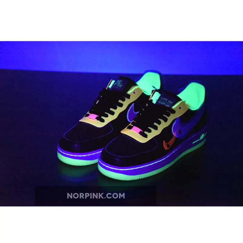 Bright green sock liners in mesh, matching the bright green Air branding on the all-white midsole, as well as the purple “Have A Good Game” branding on the hind quarter complete the multi-coloured gamer look. The two headset-wearing icons on the heel tabs and the glow-in-the-dark outsoles are a nice touch, too. Get your game on by picking up the Nike Air Force 1 Low Have A Good Game Black on Our Store Supplier app. You’ll always be on top of the latest Nike news, too.