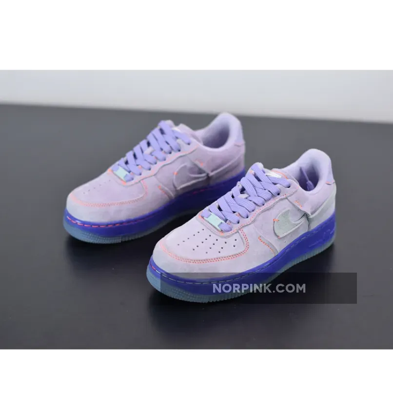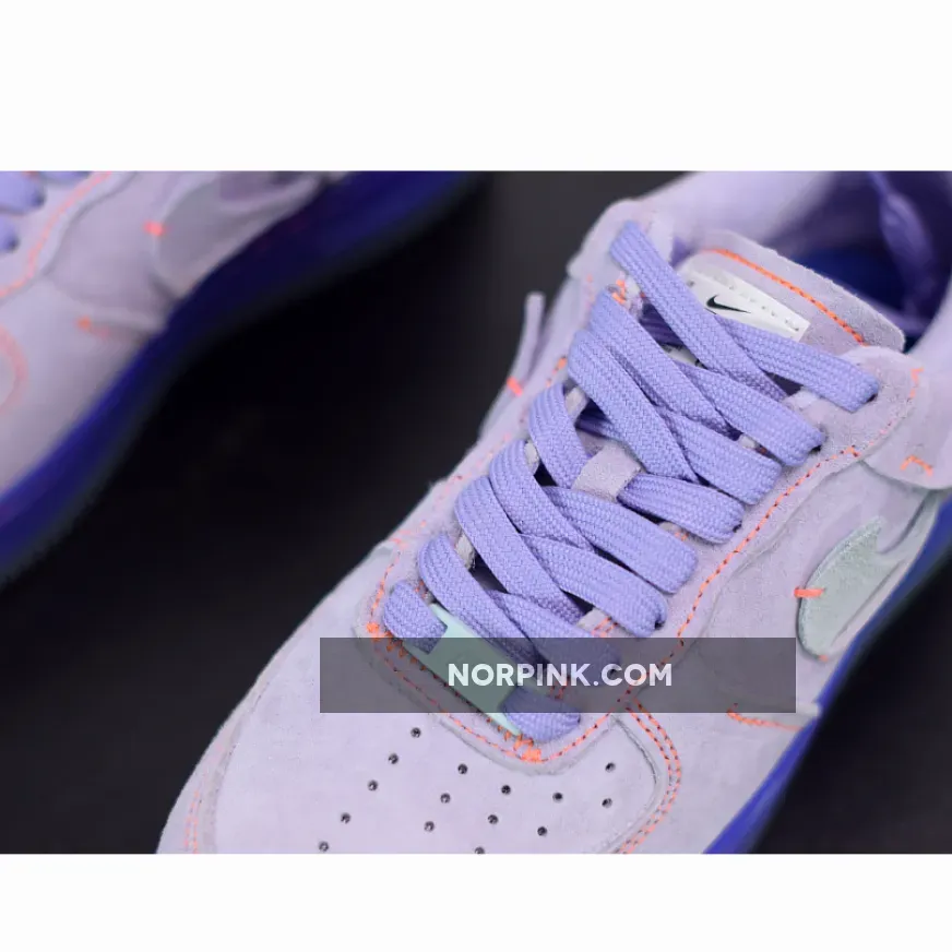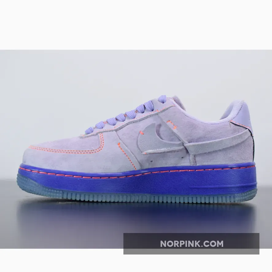 Nike continues to switch up and rework their most iconic streetwear silhouette, this time turning it inside out with mint green Swooshes across the lateral sidewalls. Soft purple suede dresses the upper of this purple and orange Air Force 1 Inside Out with a dark purple midsole below foot for a tonal touch.