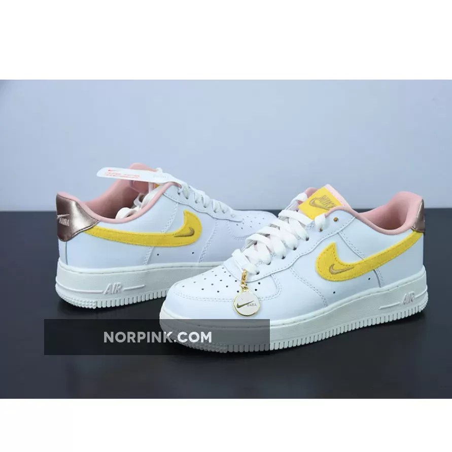 Arriving in a classic white leather construct, the design is set atop a sail sole unit to adhere to the in-vogue aged-look aesthetic. From there, the pair is overhauled with terry cloth finishes, with yellow Swooshes and tongue tags joining peach liners. The heel overlay is set in light pink satin, with the titular “Mama” or “Mini” motif embroidered in tonal thread for mum and daughter respectively.