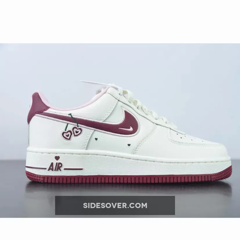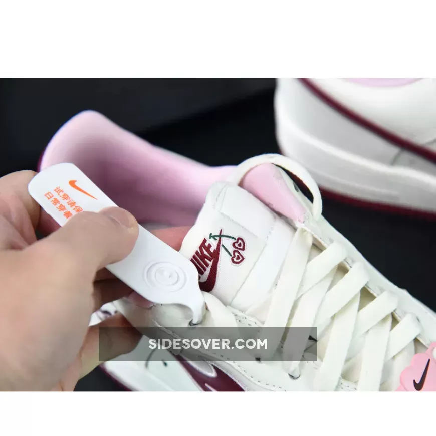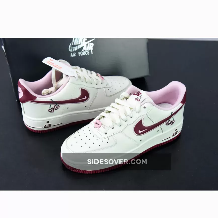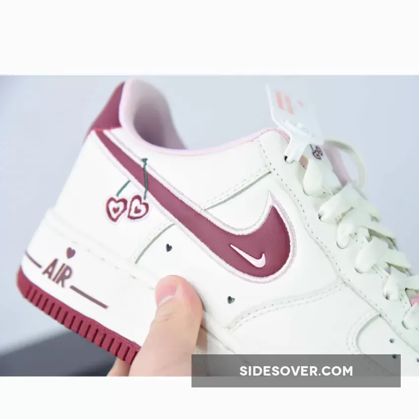 The 2023 version of the Nike Air Force 1 Low Valentine’s Day comes dressed in a Sail leather upper and tongue. The most eye-catching aspect of this “Valentine’s Day” AF1 Low is the heart-shaped cherry motifs hanging off the lateral Swoosh insignias, tongues, and insole branding. The side wall perforations, pink dubraes and Air spell-out on the midsole have been sprinkled with the V-day touch, it’s just a shame the star count hasn’t received the Air Force 1 “Certified Lover Boy” treatment. A Sail midsole, Pink lining and Red accents on the outsole, heels and Swoosh branding round out the main features of the sneaker.