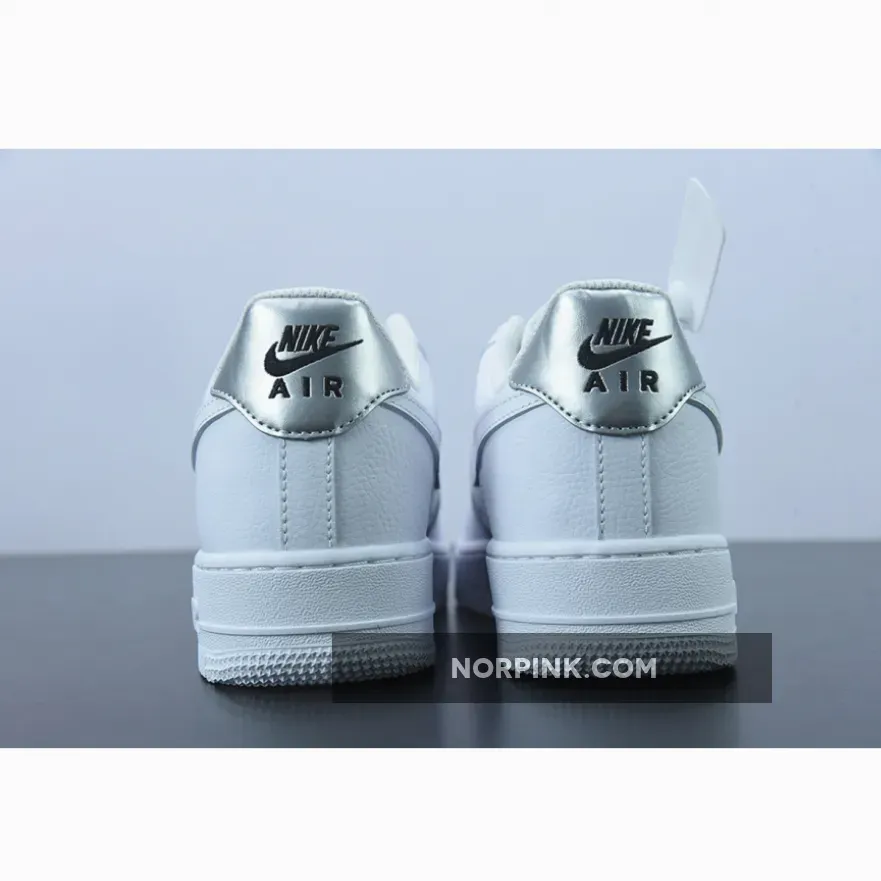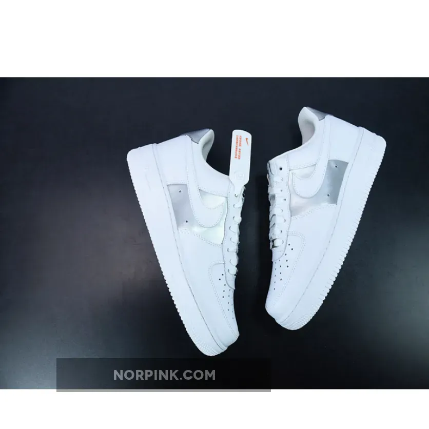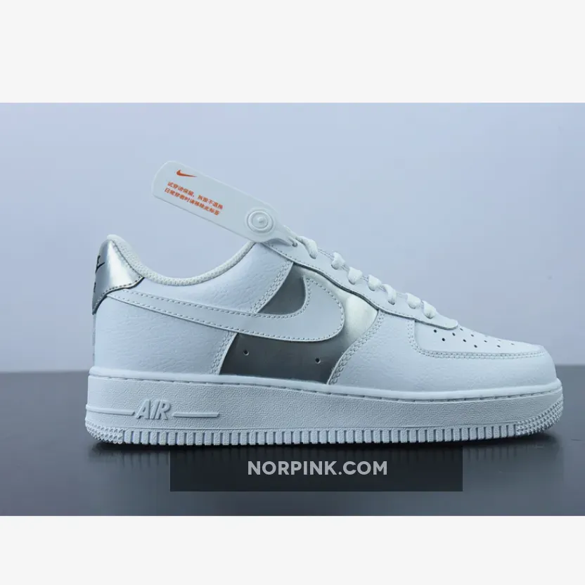 What starts off as an all-white Nike Air Force 1 Low gets hit with a burst of flash for a subtle contrast. This Nike Air Force 1 Low gets engulfed in a timeless White tumbled leather construction all over the upper with tonal detailing seen on the laces, tongues, Swooshes, inner liner, and the entire rubber sole unit. For some flash we see the addition of Metallic Silver on the side panels and heel tabs. Traditional silver lace dubraes and black branding on the tongues, insoles