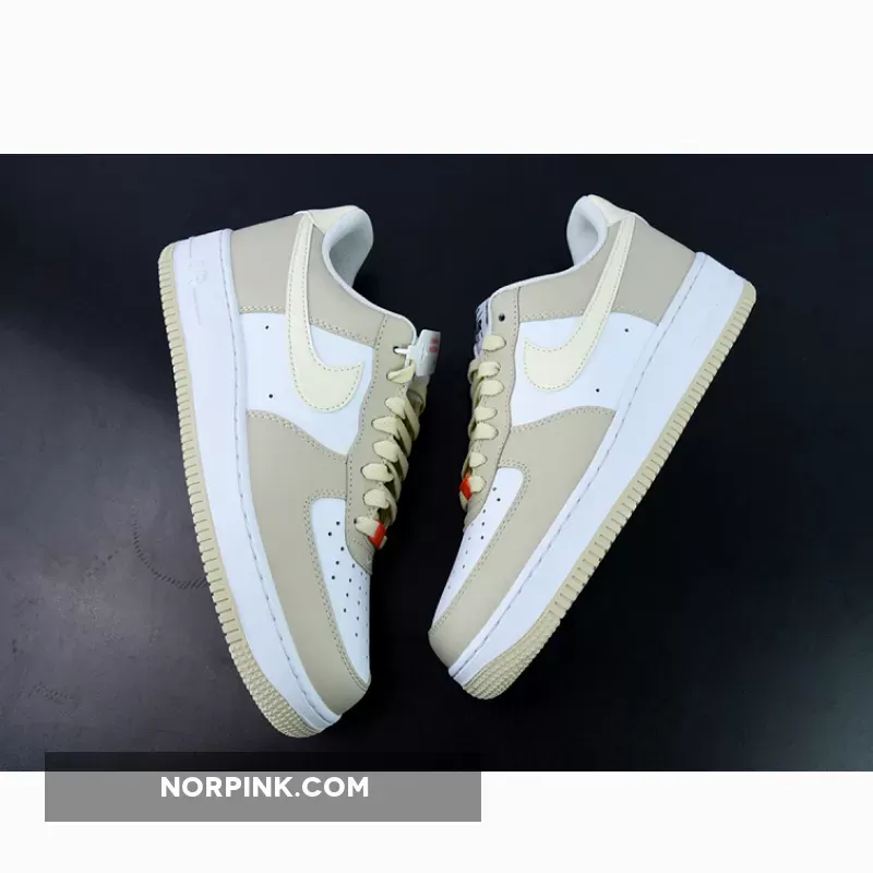 For this Nike Air Force 1 Low offering, the neutral tone arrives on the leather overlays and eyestays, as well as the rubber outsole. Elsewhere, Nike sticks with a signature white leather and AF1 midsole. Lastly, a lighter, almost yellowish-brown dresses the Swoosh profiles, heels, and laces, while orange lace dubraes add a final design touch.
