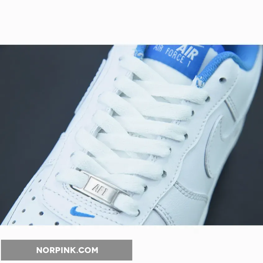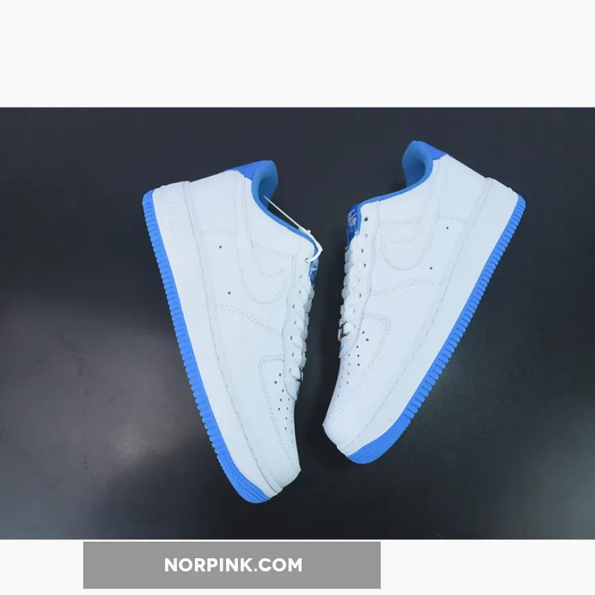 The classic Bruce Kilgore-designed Nike Air Force 1 puts on a clean and minimalist design with a touch of blue as it celebrates its 40th anniversary. Introducing the Nike Air Force 1 White University Blue. This AF1 Low is dressed entirely in smooth white leather, from heel to toe. This includes the profile leather Swooshes on both the medial and lateral sides of the shoe. The titular sky-hued University Blue on the Nike Air-branded tongue tabs, the tongue lining, the mesh sock liner and the heel tabs with Nike Air branding embroidered in white. Metallic lace deubrés adorn the toe section.