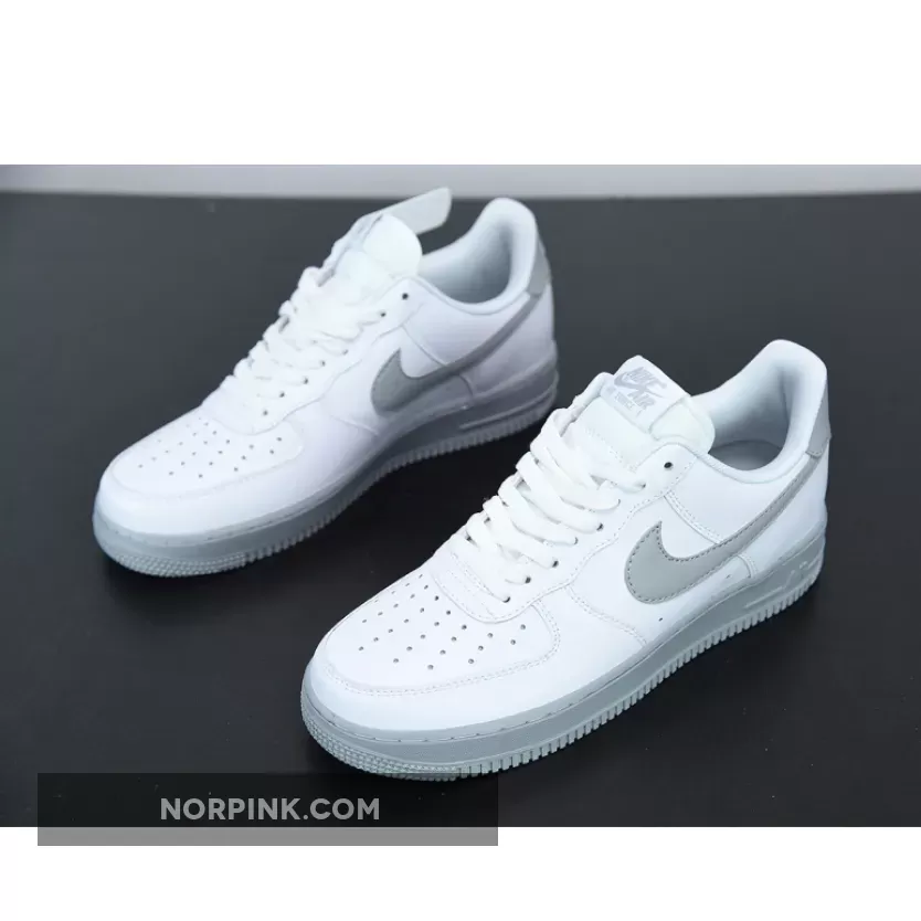 The legendary Air Force 1 07 returns with a minimalistic colour two-tone blocking for the daily rotation. Smooth leather dresses the uppers with “Wolf Grey” dressing the Swoosh, heel badge and midsole/outsole for a simplistic contrast. Classic Nike Air embroidered at the heel with perforations at the toe box. Padding at the collar keeps your foot snug and locked in. The foam midsole includes an encapsulated Air cushioning unit with a non-marking rubber outsole to provide the traction.