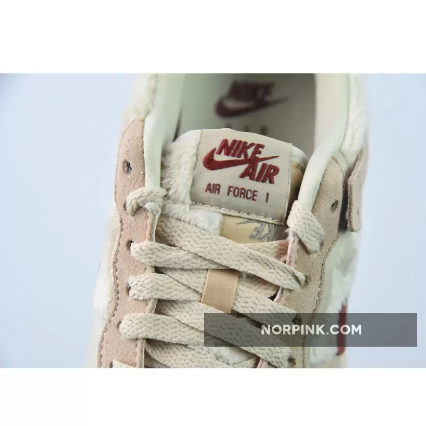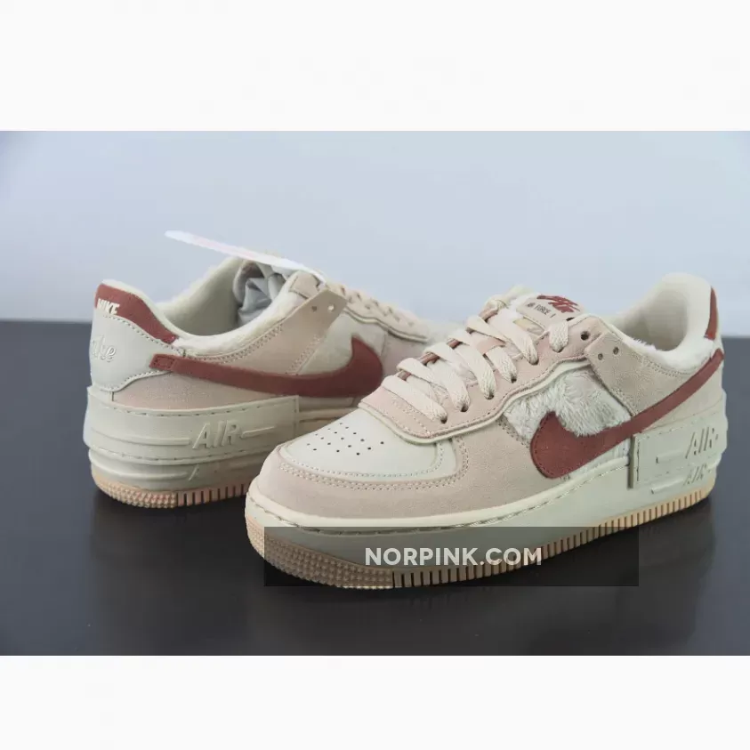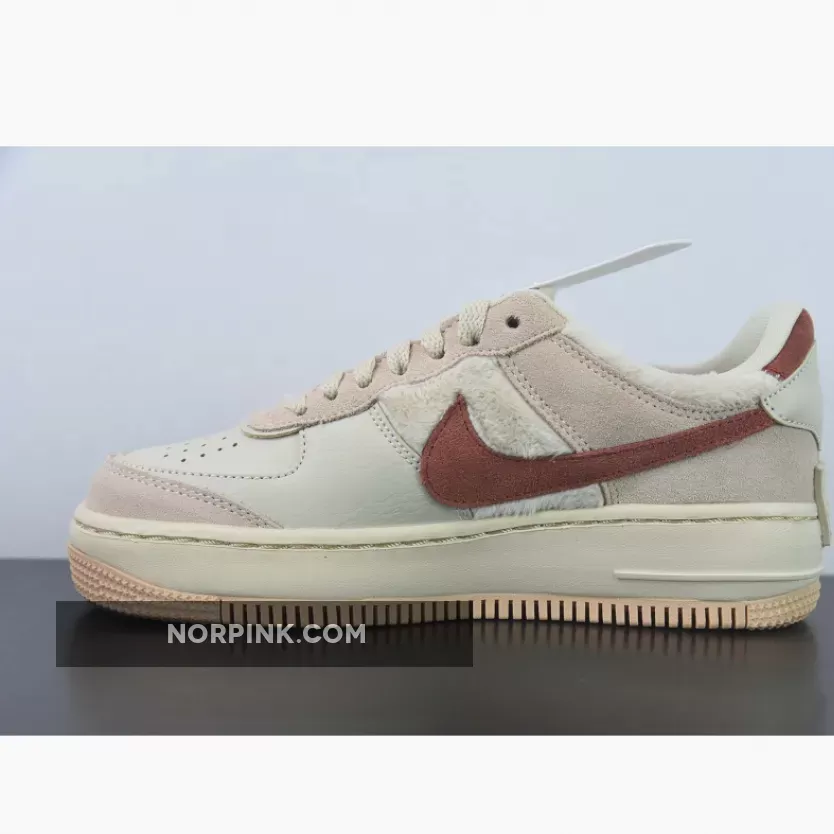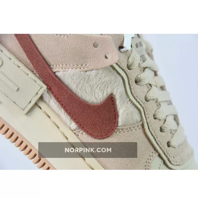 An attractive Mars Stone hue lands on the surface of a Swoosh, matching the heel-tab and the Nike Air logo on the tongue. Sitting just below that logo is a fuzzy plush exterior reminiscent of stuffed animals — an aesthetic emphasized by the light brown exterior.