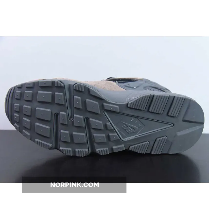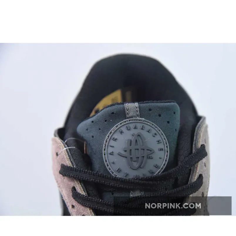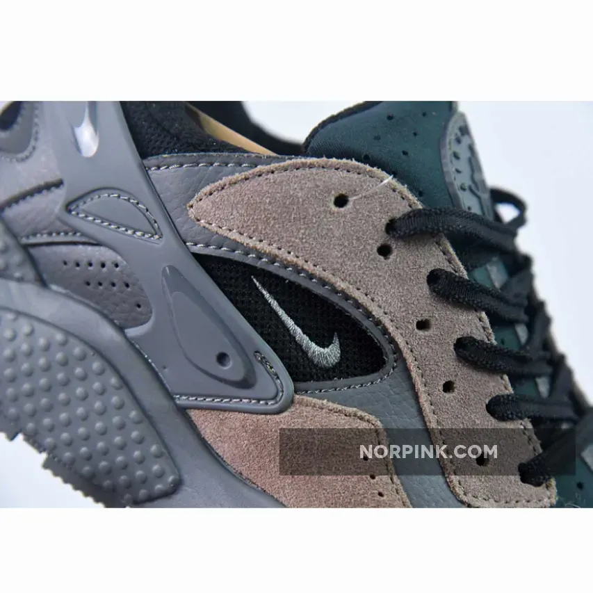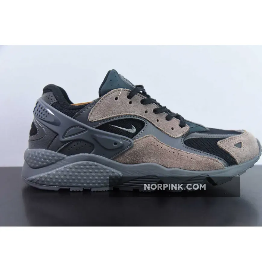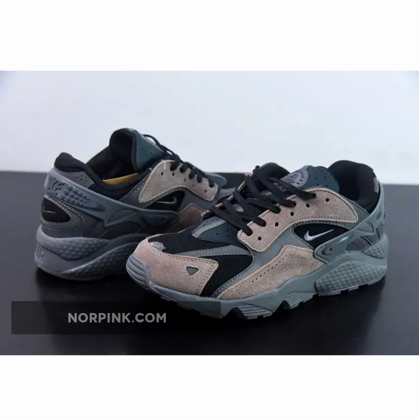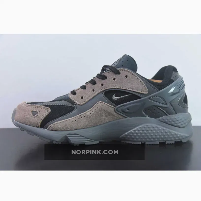 This pair is given a predominantly Black base that’s then paired up with overlays arriving in Medium Ash and Anthracite. A miniature swoosh also lands on the profiles, delivering a big change from Hatfield’s original Nike Air Huarache idea.
