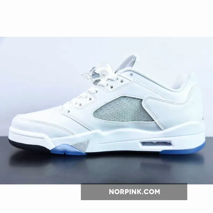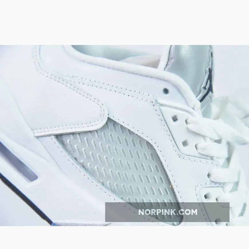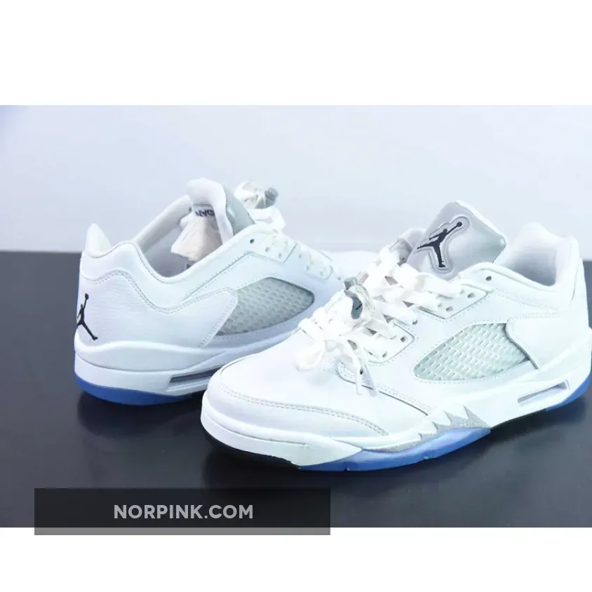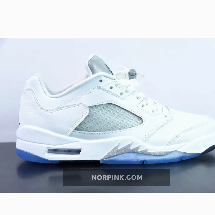 This new colorway of the Air Jordan 5 Low is VERY similar to the Air Jordan 5 Metallic Silver that released with the only main differences being that this is a low-top and features some speckling on the shark teeth on the midsole. The shoe features an all-White leather base upper with Black detailing and Wolf Grey accents throughout. Finishing off the look is an icy translucent outsole.