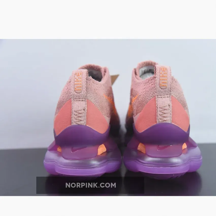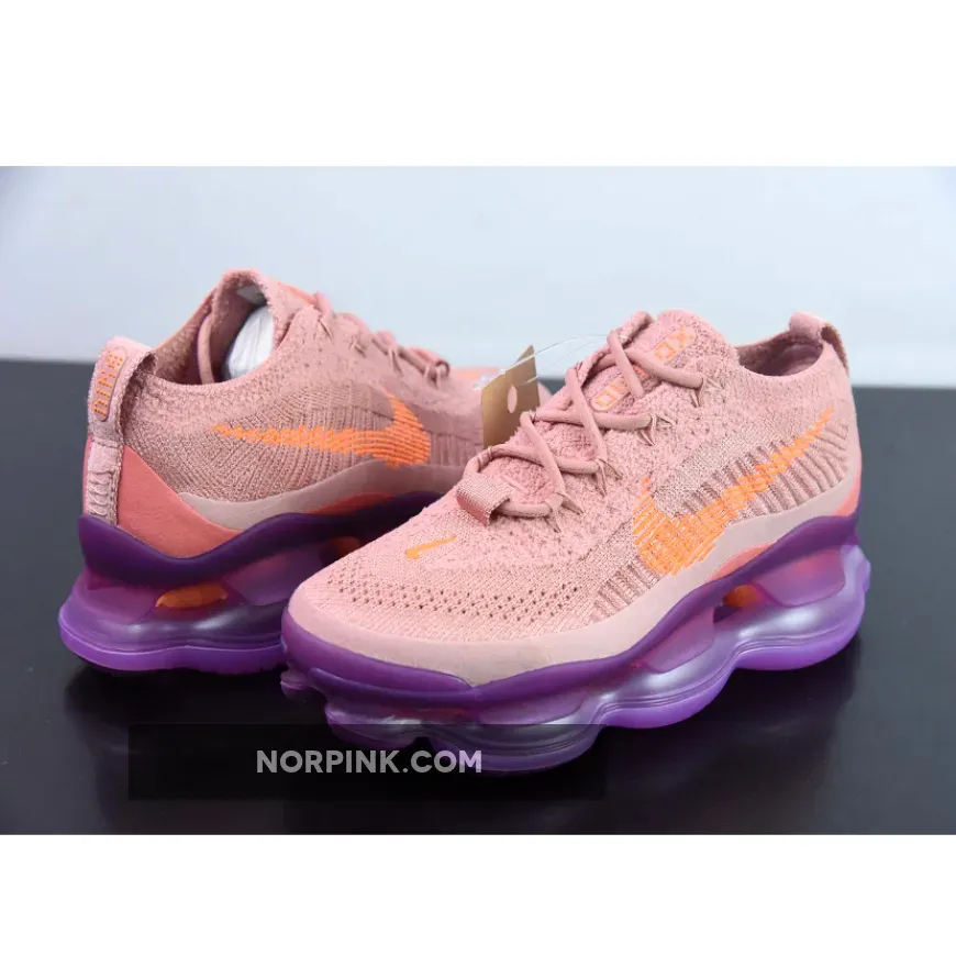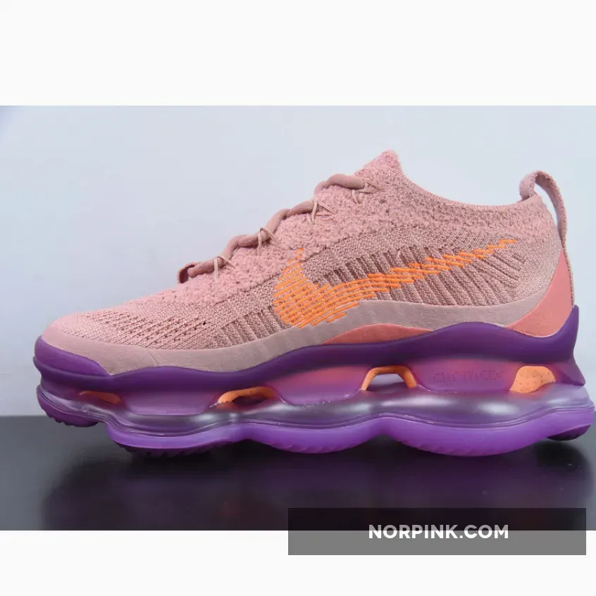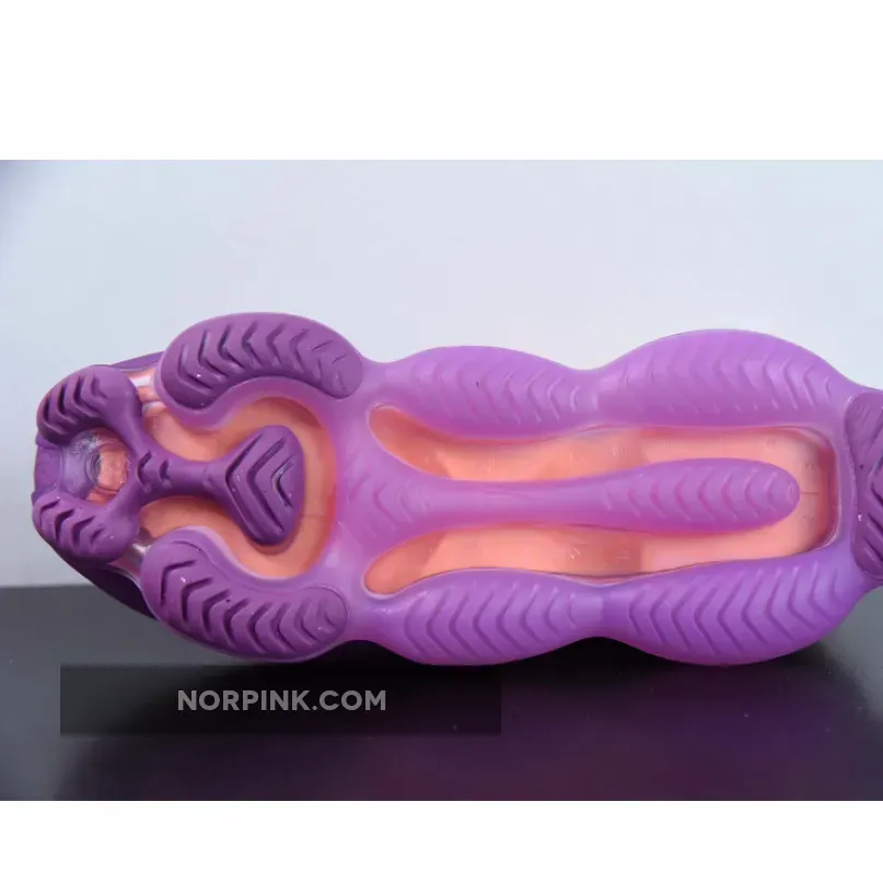 this Nike Air Max Scorpion comes dressed in a Muted Pink, Orange, and Purple color combination. While this colorway doesn’t have a name yet, it seems to be inspired by a dusk setting. A muted pink takes on most of the sneaker’s uppers, with orange arriving to accentuate the Swoosh and other areas. Signature details onf the model include the thick full-length Air Max sole unit done in Purple, heel pull tabs and Flywire-like eyelets. Down below, a translucent purple arrives to take on the massive chunky sole unit.
