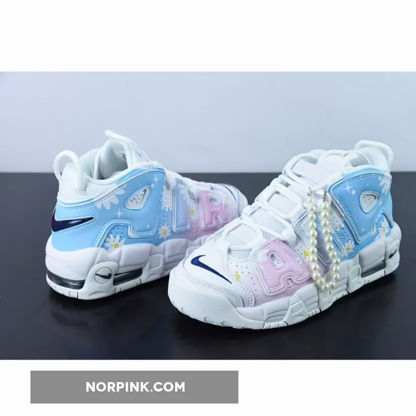 nike uptempo white and blue / nike blue and pink / nike air uptempo white and blue