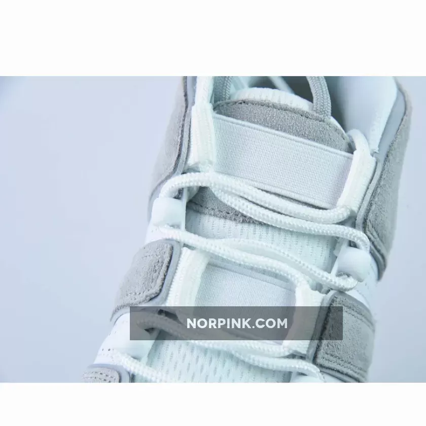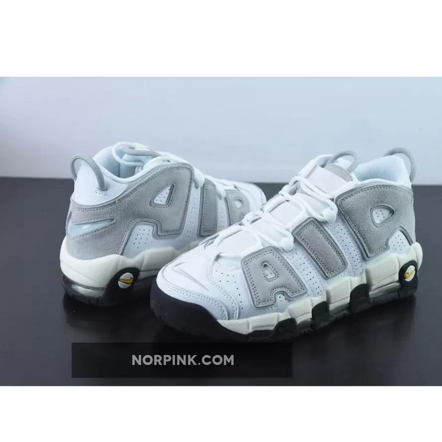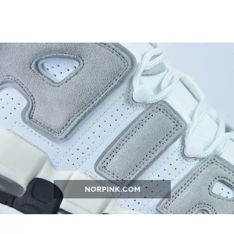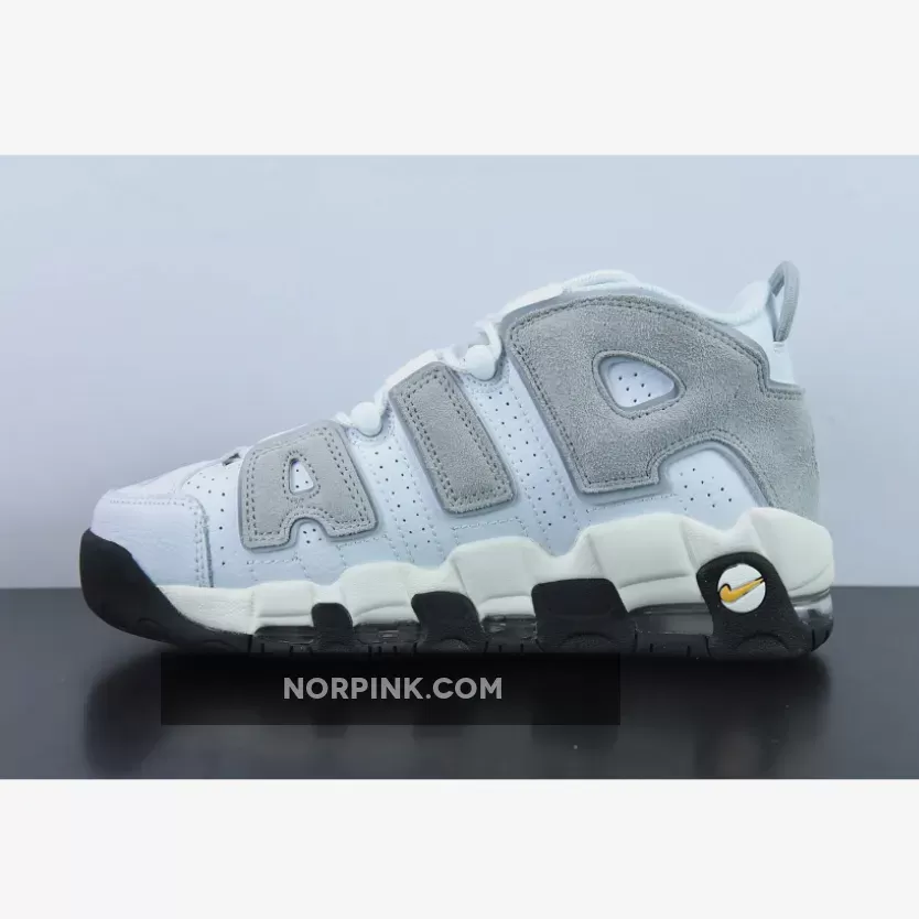 The Nike Air More Uptempo White Grey Bordeaux is what you get when you put together an elegant colourway and a bold silhouette. Balanced and ultra-stylish, this shoe features a perforated white leather base that’s topped with oversized grey “AIR” branding on the side panels. Meanwhile, hits of burgundy via the Nike Swoosh on the toe, heel branding and back loop add a fancy touch. Underfoot, the Nike Air units that provide lightweight cushioning to this Nike Air More Uptempo are encased in a black cage which matches the front portion of the durable outsole.