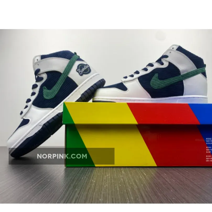 Are you looking to add another pair of Nike Dunks to your collection? Then look no further as the Nike Dunk High Official Basketball certainly holds grail status. Ever since the Nike Dunk resurged in 2019, it has appeared in countless colourways, with some that have become highly covetable, however, it appears that people have forgotten of its true heritage since they’re treated more like lifestyle shoes in modern times. This Dunk High variant sees a navy colourway filling in the corduroy overlays across its collars, quarter panels, toe boxes, and the Swoosh logo which opts for a bold green hue instead. As for the counterparts, notably the heel and collar flaps, the eyestays, and the toecaps, all indulge in a pristine tone of white to deliver a contrasting look to the design.