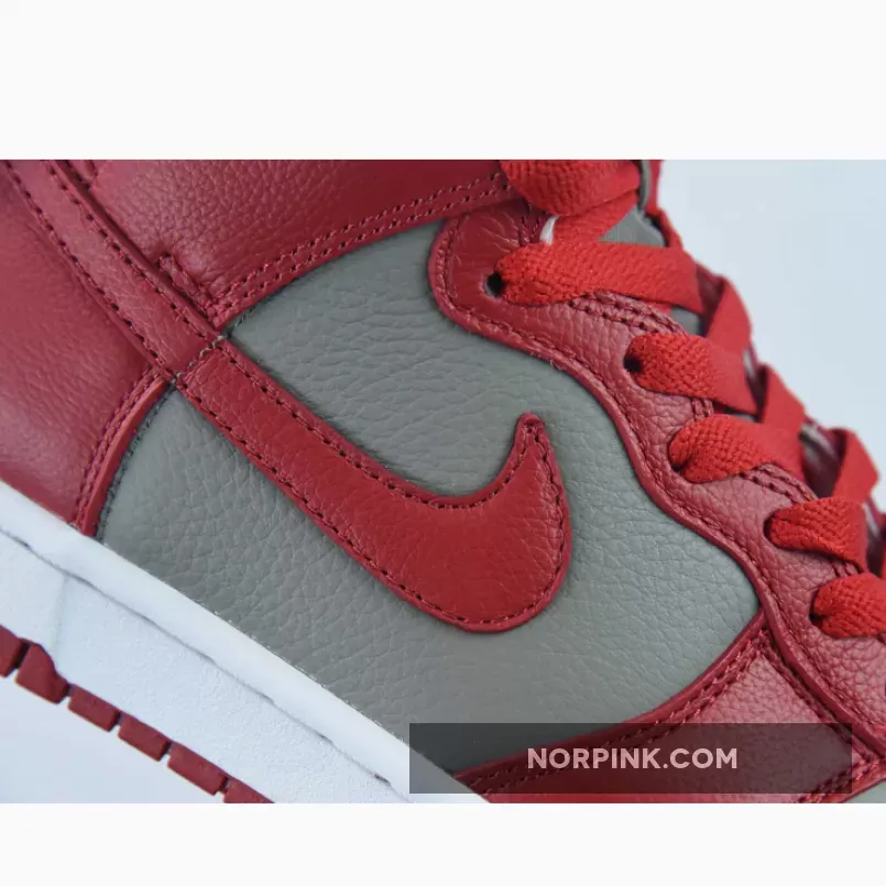 Dripping in ’80s heritage while updated with modern tones, Soft Grey and University Red glide across the Dunk High much like former UNLV greats Larry Johnson and Stacey Augmon, just to name a few.