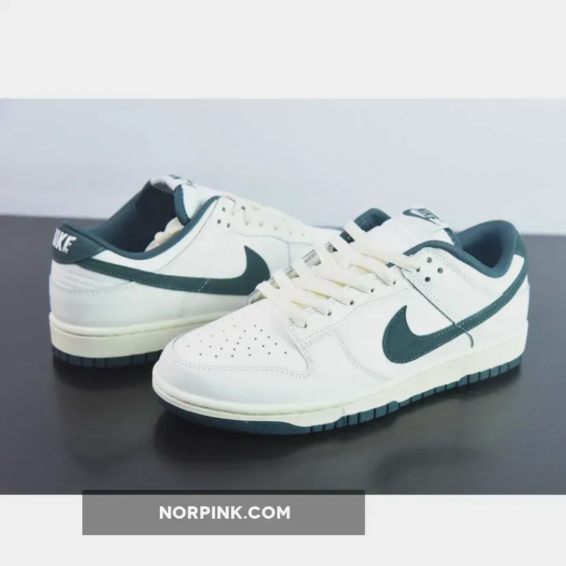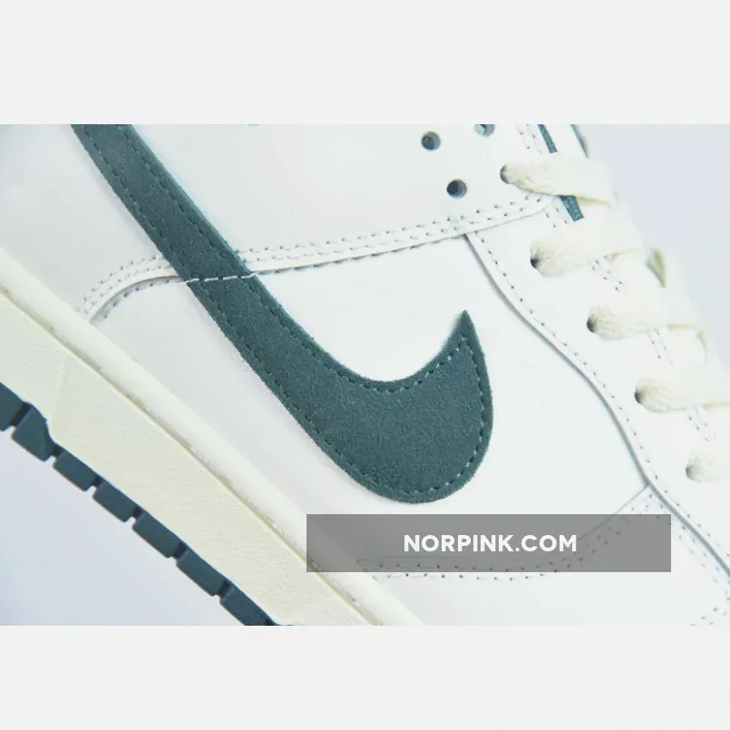 Done in a Sail/Deep Jungle-Coconut Milk-White color scheme, this special iteration of the Dunk Low combines college sports inspiration with a nostalgic vintage aesthetic.