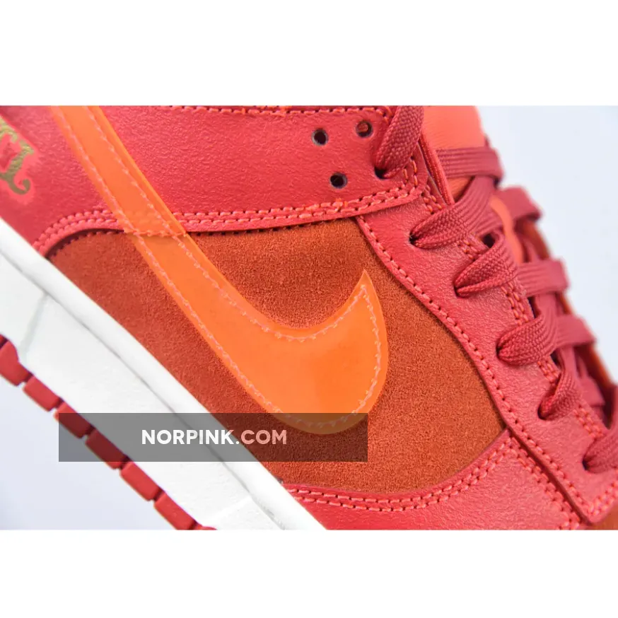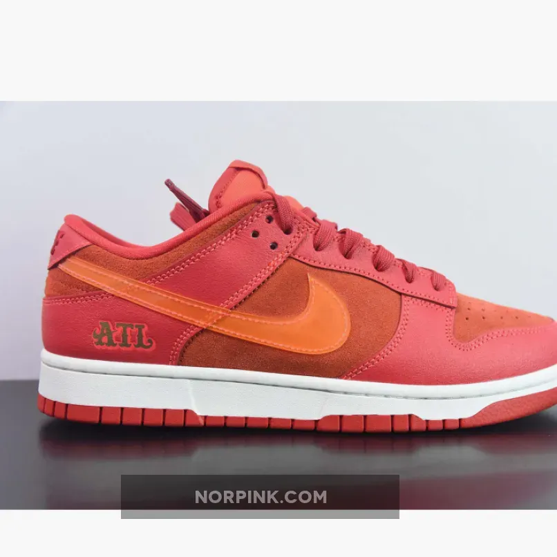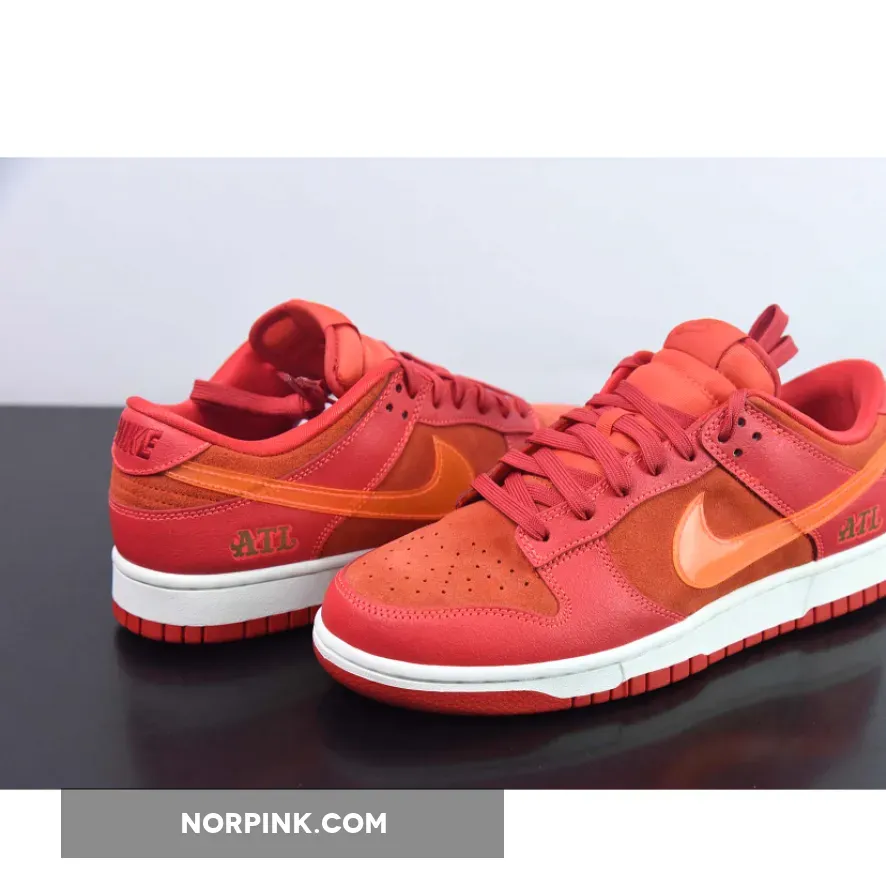 This offering of the Nike Dunk Low sports a Crimson Red base constructed in a mix of suede and leather materials with mesh tongues and lining. The Nike Dunk Low is constructed with a mix of leather and suede materials along with mesh tongues and lining. The suede highlights the entire upper and the overlays, while the Swoosh features an orange tint and is made of patent leather. Golden “ATL” branding luxuriously accents the heel counters and insoles, completing the design atop white and red sole units.