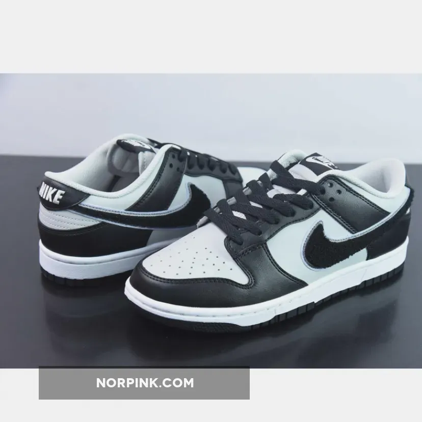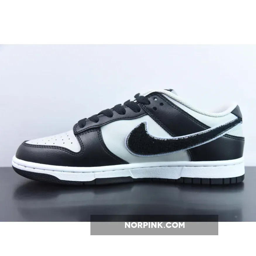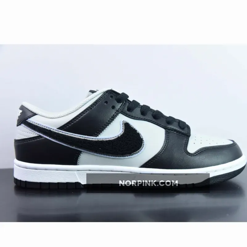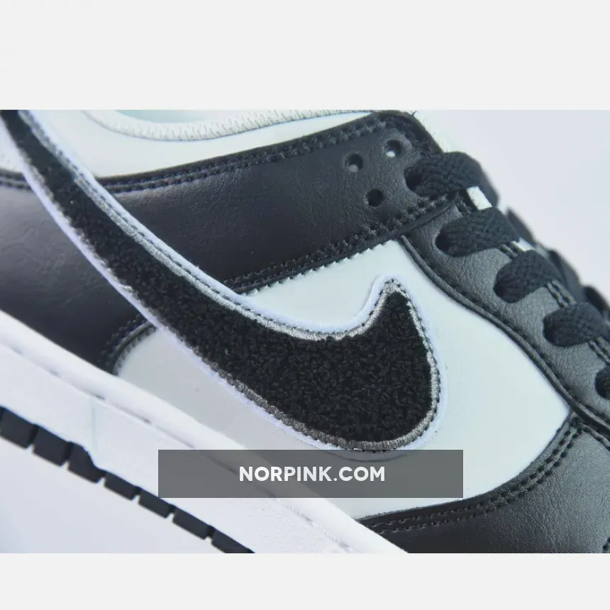 The Peter Moore-designed Nike Dunk has featured a lot of materials and looks in its 37 years of existence, from snakeskin to leopard print to a wear-away design. The latest Dunk comes with a unique chenille Swoosh that hasn’t been seen on a Dunk in a long time. Meet the Nike Dunk Low Chenille Swoosh Grey Black.