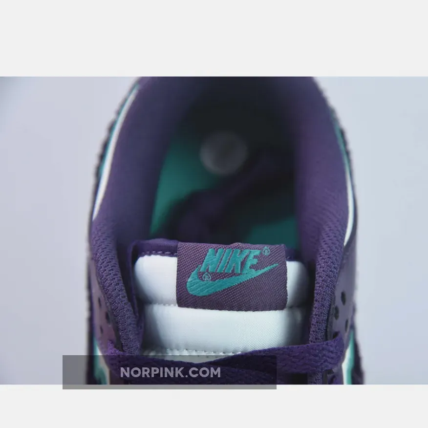 Also said to be part of a larger varsity jacket-themed “University” series, this iteration of the Nike Dunk Low Chenille Swoosh comes dressed in a White leather base contrasted by the Purple leather overlays and Aqua accents throughout. Chenille-textured Nike checks along with the smooth leather overlays, laces and interior liners are all decorated with the titular tone. “Neptune Green” is used as an accenting hue here as it furnishes the Nike branding on the tongues and heels as well as the borders of the aforementioned Swooshes. Breaking up these vivid tones comes simple white finishes atop the toe boxes, quarters and collars.