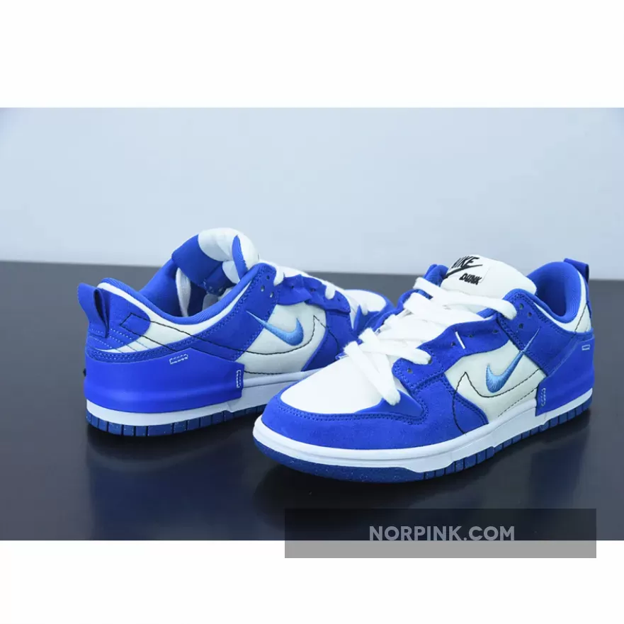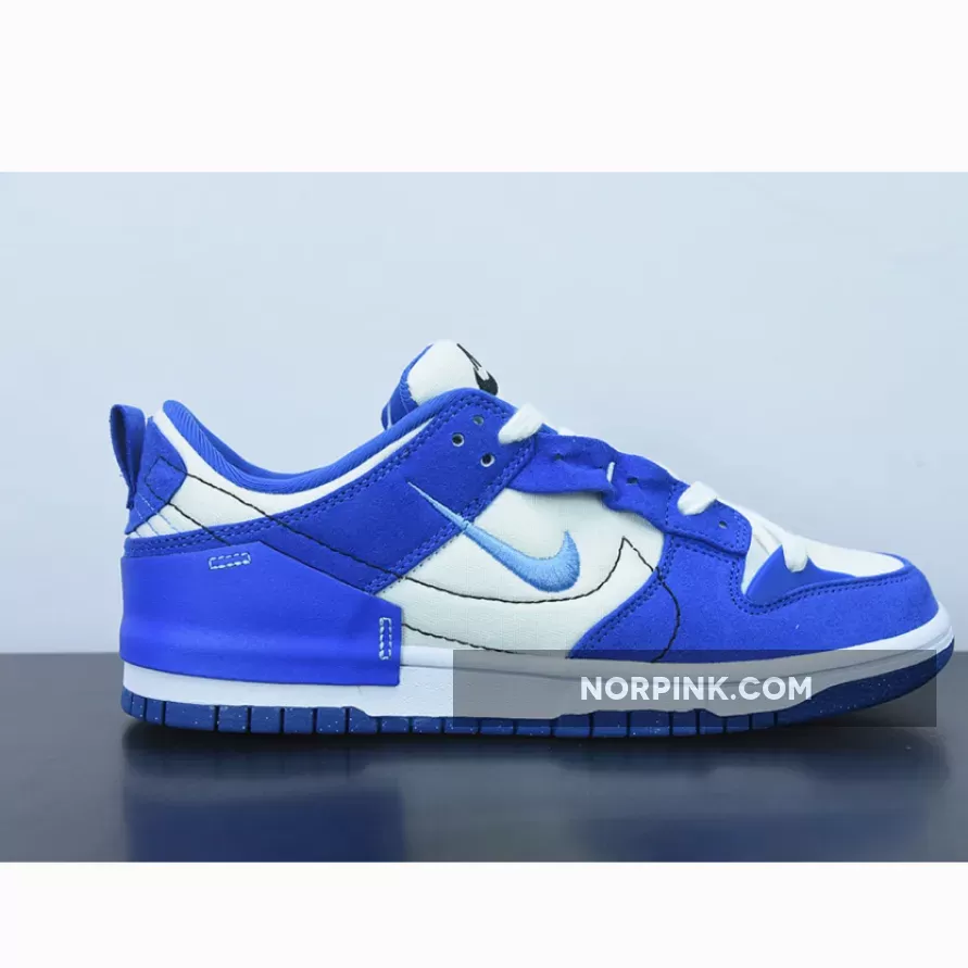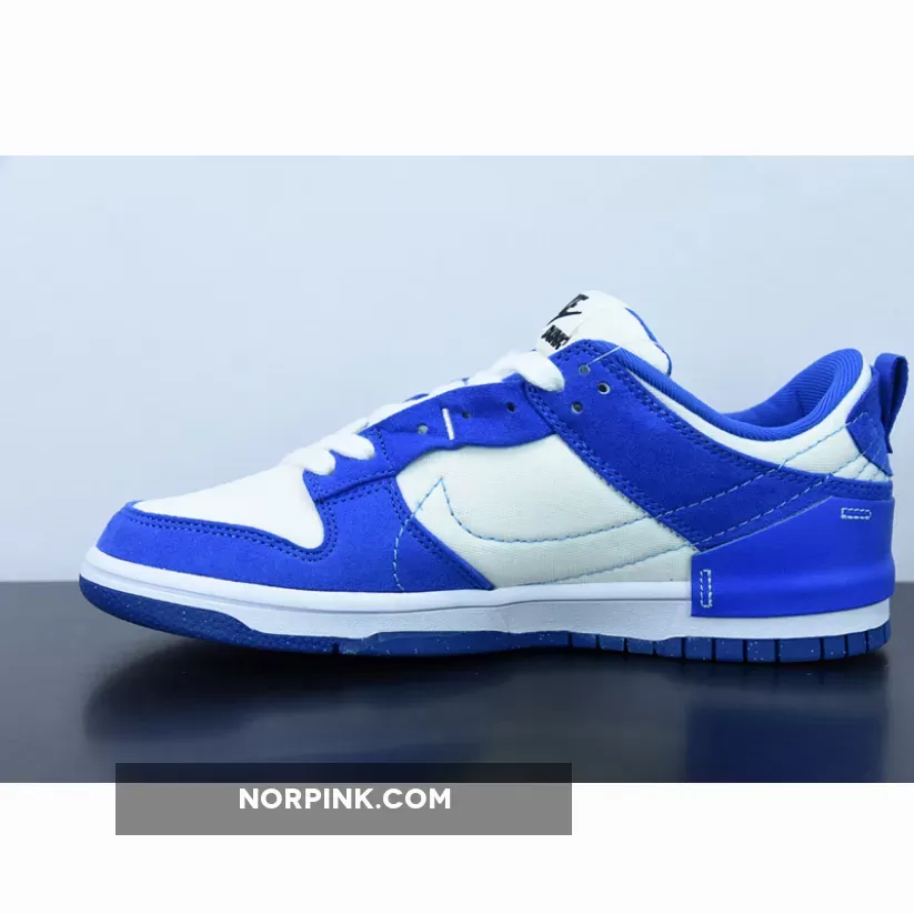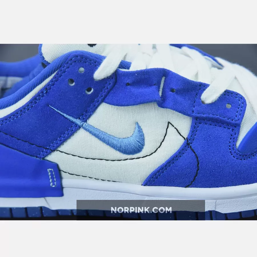 Nike continues its velocity and updates the Nike Dunk Low Disrupt Game Royal look with its all-new Nike Dunk Low Disrupt 2 White Royal, featuring different materials and a mismatched aesthetic.This Dunk Low features a white canvas base on its upper with electric blue overlays in a fuzzy fleece-like material. The side Swooshes on this shoe are deliberately incongruous, with the lateral side featuring an embroidered blue Swoosh atop the outline of another Swoosh below it sewn in black and the medial side showing only the outline of a Swoosh in blue. You’ll know that this shoe is sustainable because of the uneven Pinwheel logos on the insoles.