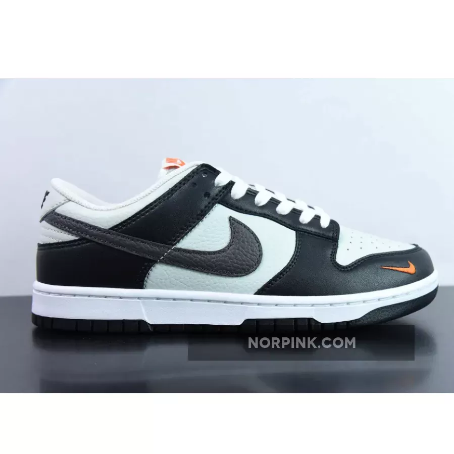 The Nike Dunk Low “Black Grey Orange” is a monochrome riff on a sneaker staple. This pair is made from a mix of pebbled and smooth leather, with white serving as base and black encaging the upper at the mudguard, eye stays, collar and heel. A Swoosh appliqué traces the medial and lateral side and a smaller logo appears embroidered in metallic orange onto the side of the toe. The branding on the tongue picks up the warm hue. Meanwhile, the toe box is punctuated with perforation ports for breathability, while the ankle is reinforced with ample padding for comfort.