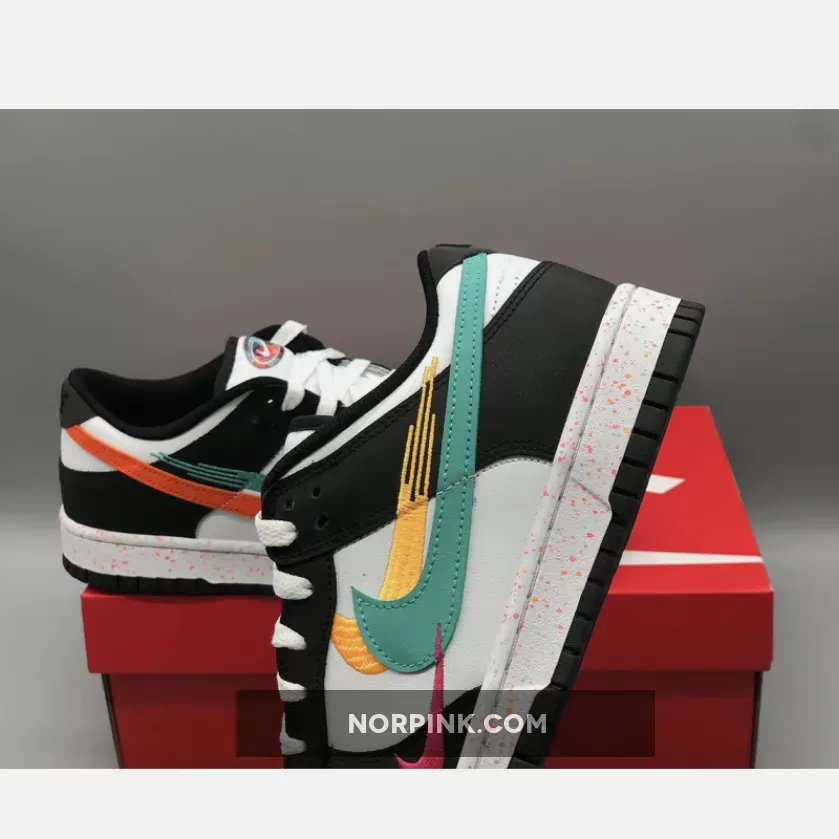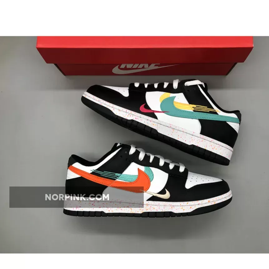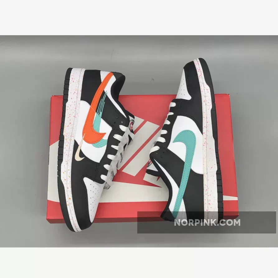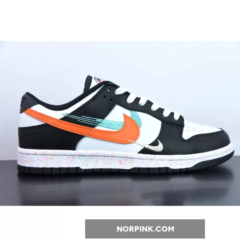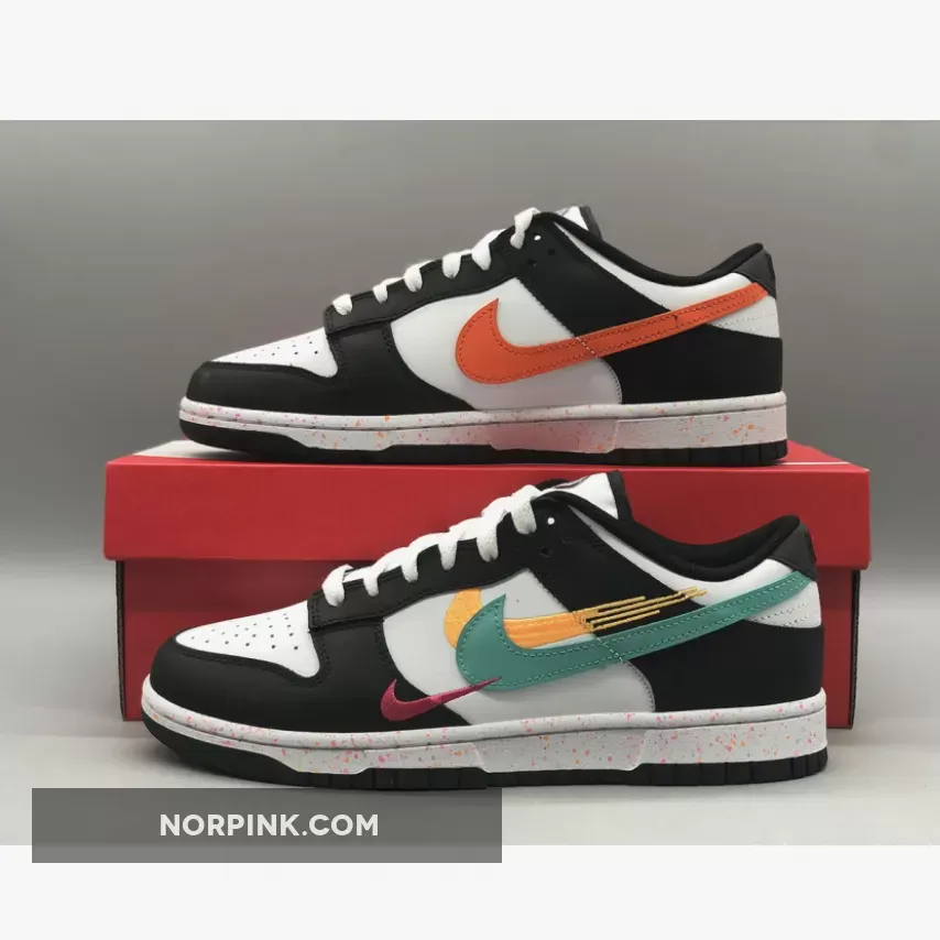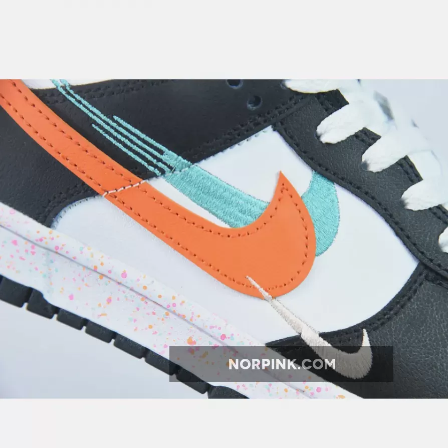 this Dunk Low features multiple Swooshes across its lateral profile. Slightly altered, embroidered styles sit to the side of the silhouette’s usual, leather-constructed check, which is dressed in orange and blue across the left and right foot, respectively. Their adjacent counterparts are clad in equally bold colors, matching the sockliner, midsole speckles, and tongue branding. The base, then, rounds out the colorway in a scheme reminiscent of the ever-ubiquitous “Panda.”