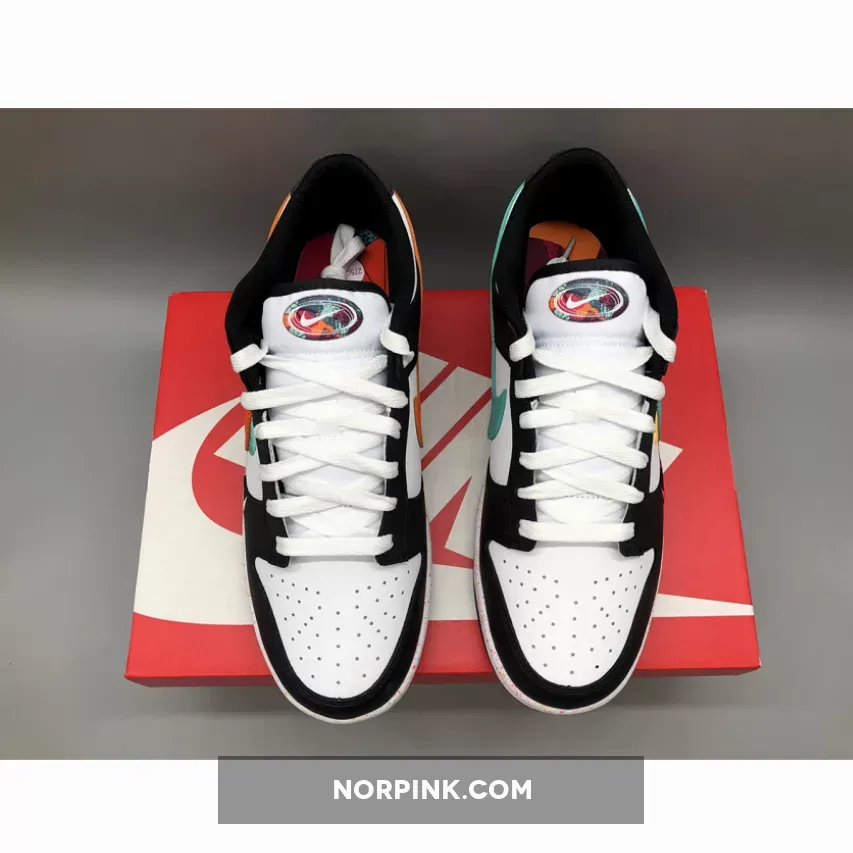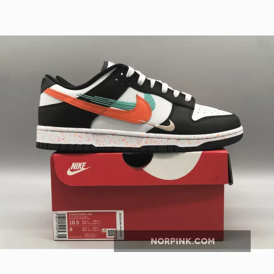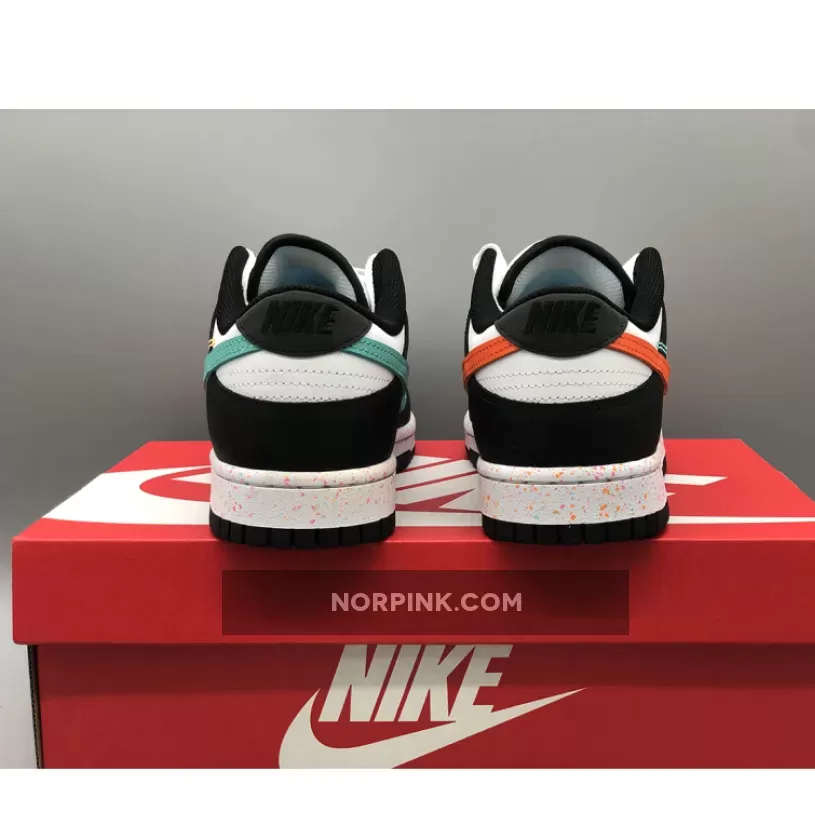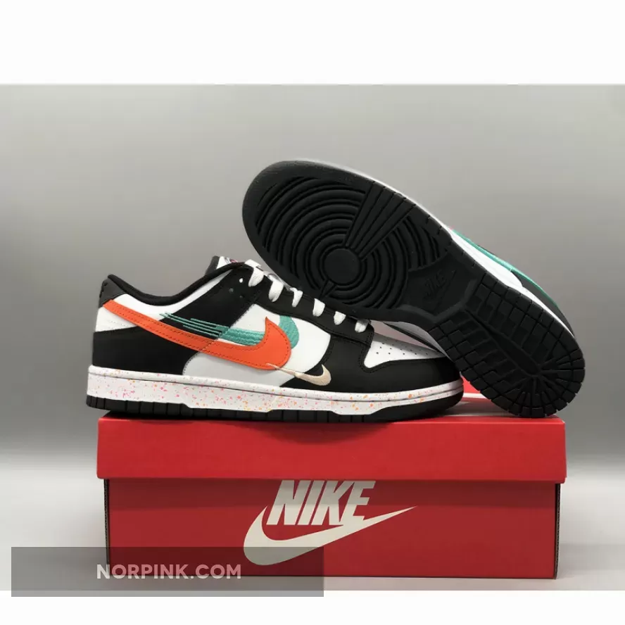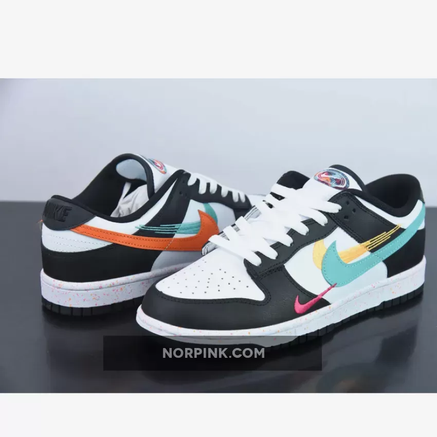 this Dunk Low features multiple Swooshes across its lateral profile. Slightly altered, embroidered styles sit to the side of the silhouette’s usual, leather-constructed check, which is dressed in orange and blue across the left and right foot, respectively. Their adjacent counterparts are clad in equally bold colors, matching the sockliner, midsole speckles, and tongue branding. The base, then, rounds out the colorway in a scheme reminiscent of the ever-ubiquitous “Panda.”