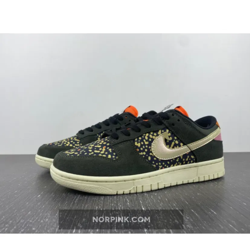 A Rainbow Trout aesthetic envelops the upcoming silhouette as seen in recently leaked imagery from kicksdong on Instagram. Dominated by dark olive suede overlays, the fishes vermiculation coats the vamp and midfoot base layer in a black and speckled yellow pattern. . These yellow spots match the golden yellow scaly Swooshes that shine with a fishhook design attached on the lateral’s Swoosh. Rough suede overlays are covered in a forest green while the heel remixes suede in orange and pink patches. Its cream sole features orange stitching that matches the ripstop tongue that carries a fish drawing with “Nike Beaverton 1972” text written on it.