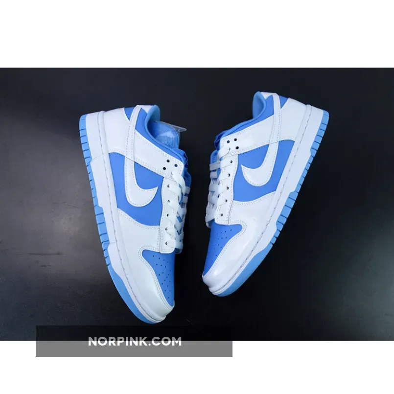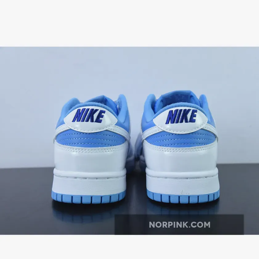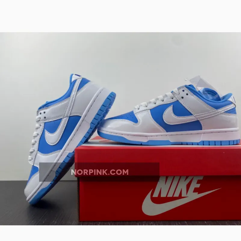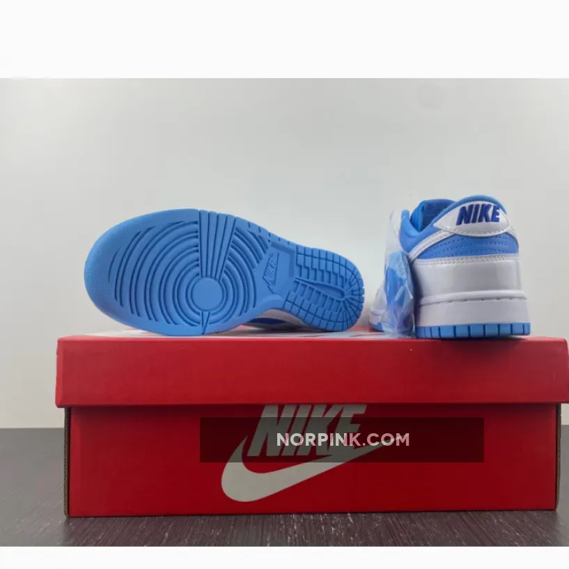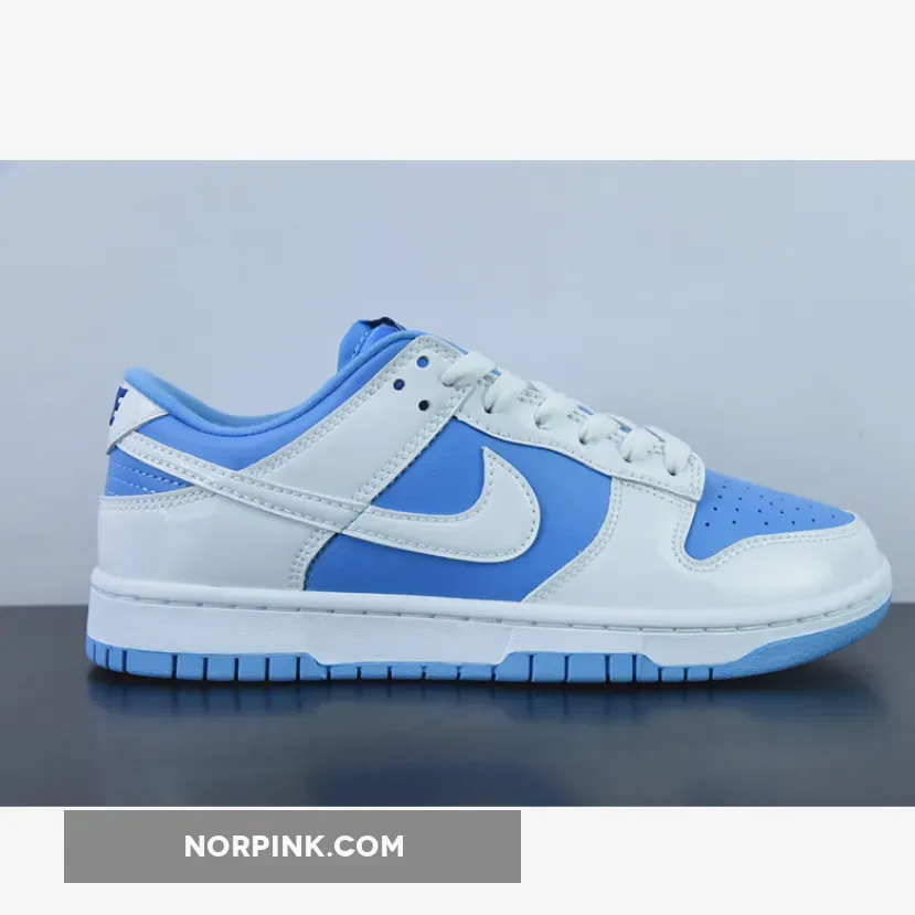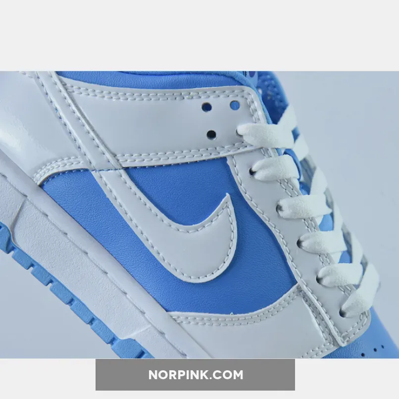 As its moniker suggests, the Nike women’s Dunk Low ‘Reverse UNC’ delivers a play on the ‘UNC’ Dunk from 2021. The leather upper features a Carolina blue base with contrasting white overlays and a color-matched Swoosh. A Nike wordmark is embroidered in navy lettering on the white leather heel tab, while a woven Nike tag embellishes the breathable nylon tongue. The low-top is underpinned by a traditional rubber cupsole that pairs white sidewalls with a blue rubber outsole.